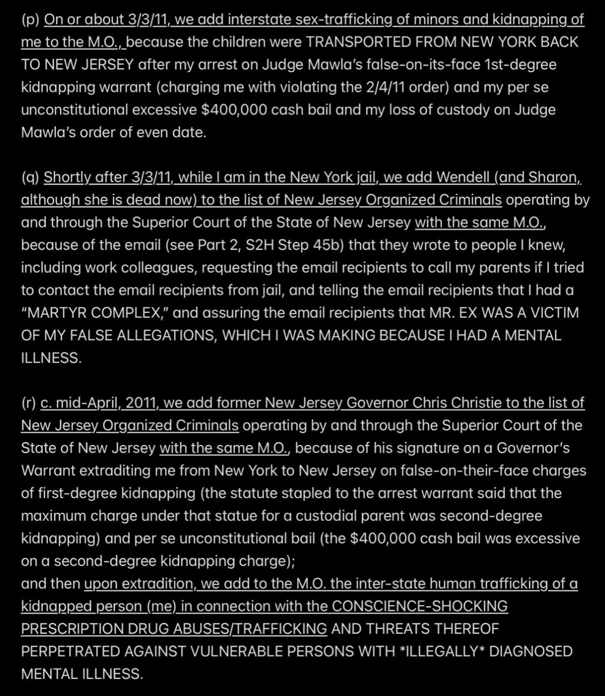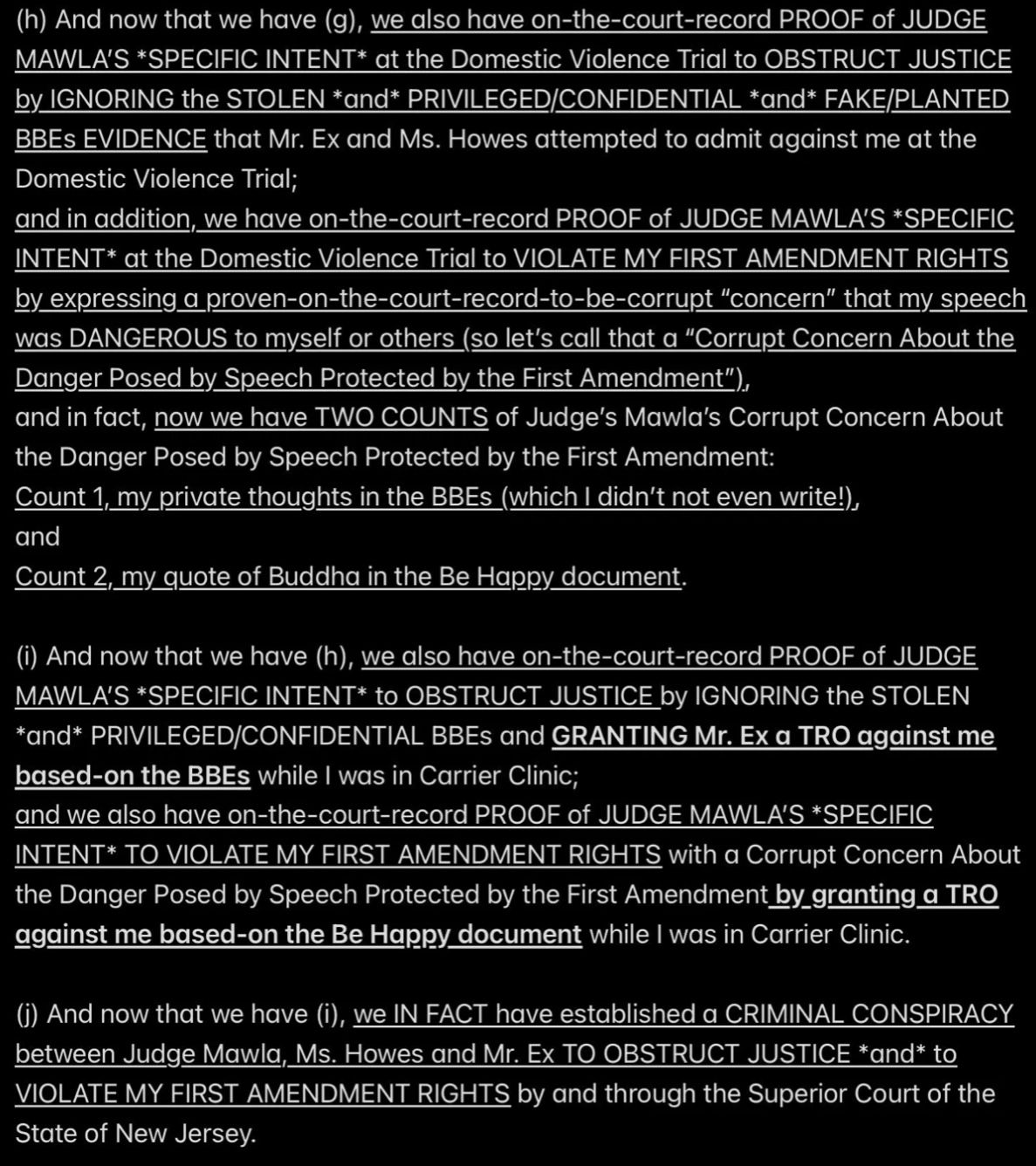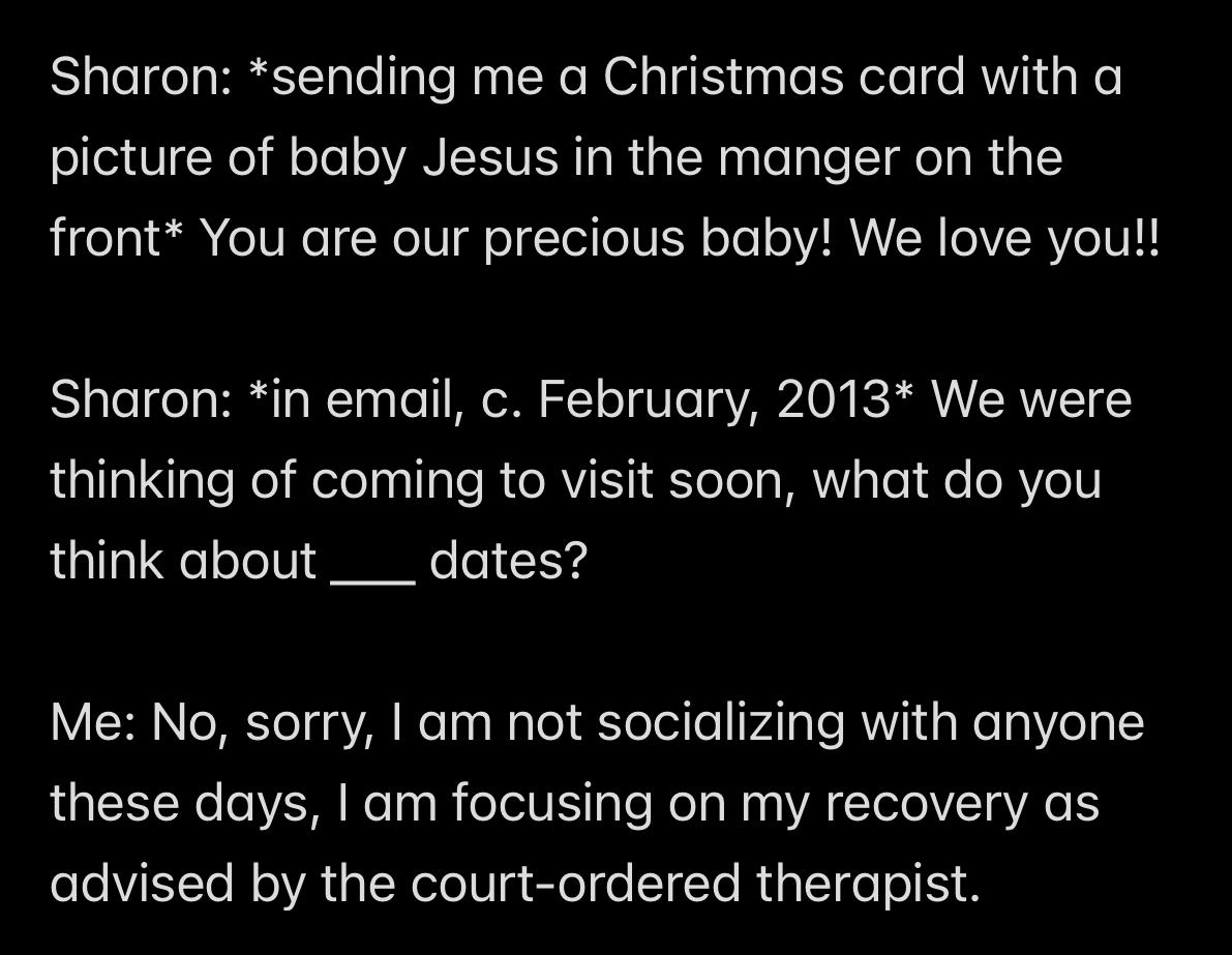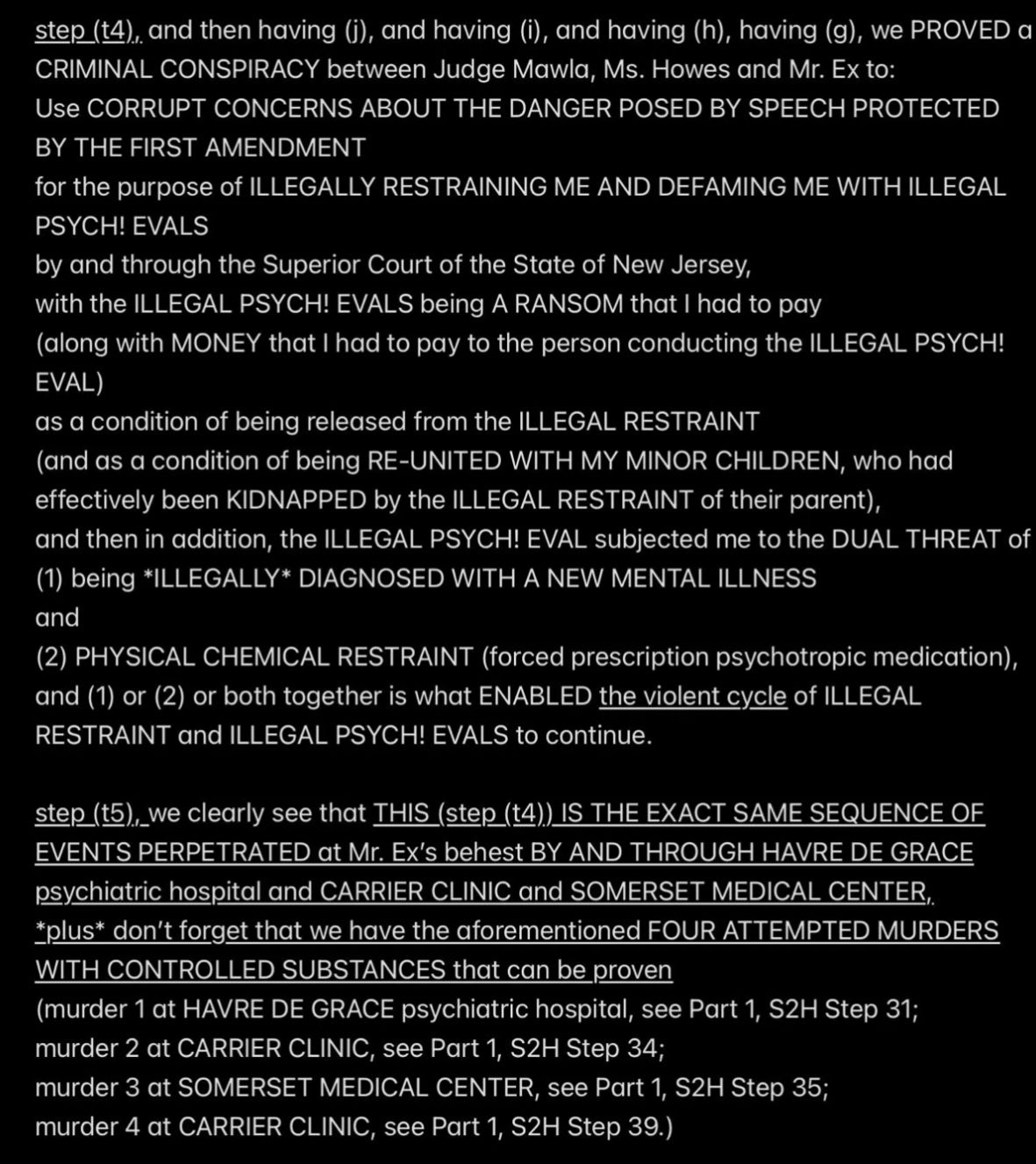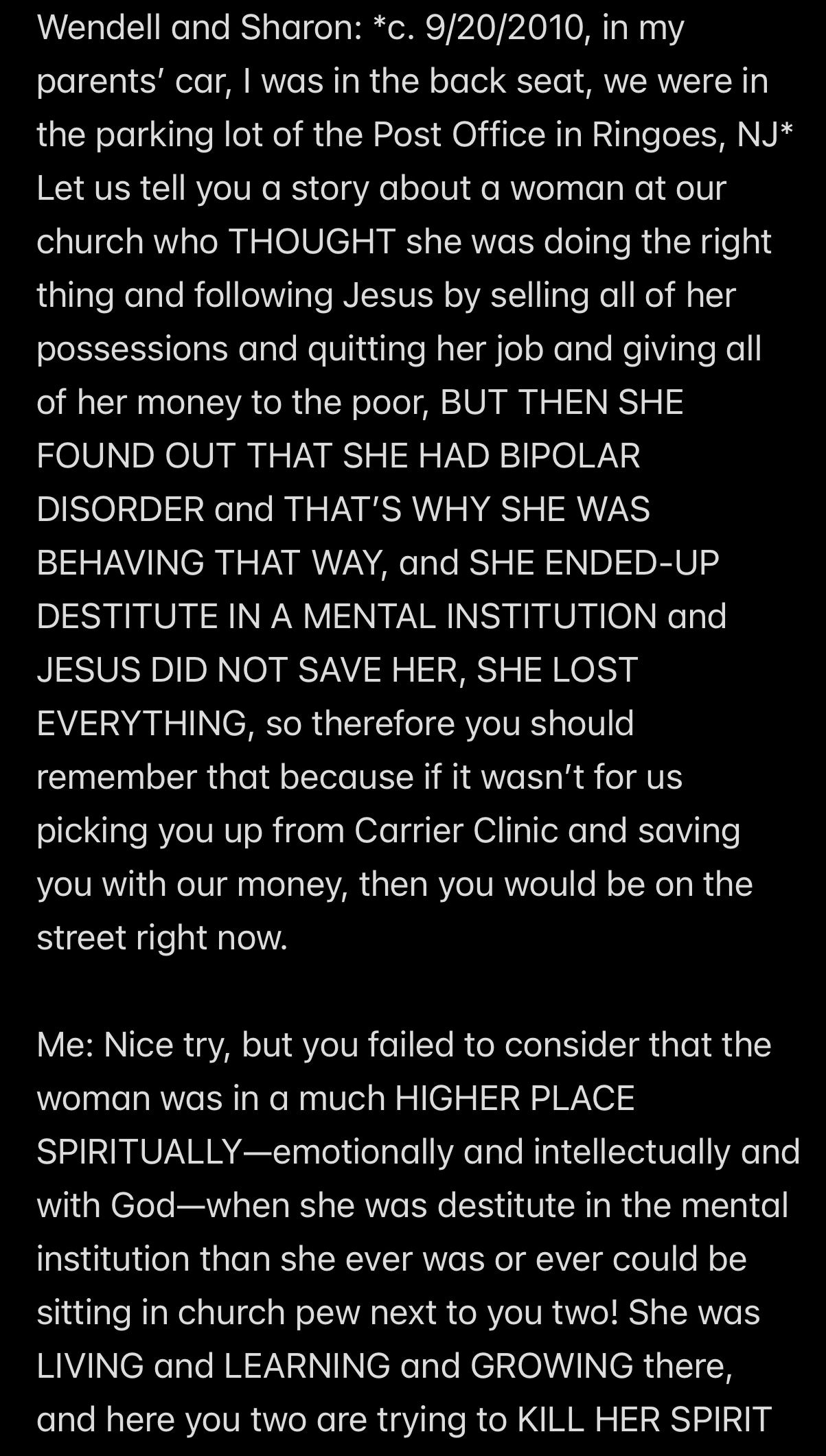 e.g., when Wendell was telling people in my “contacts list” (via email) that I had a “mental illness” that was causing me to FALSELY ACCUSE MR. EX MBA *AND WENDELL* OF ABUSE,