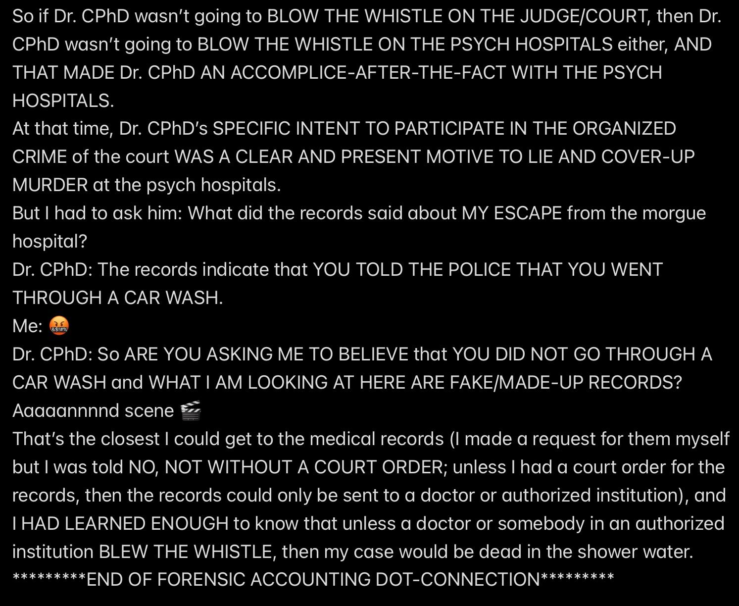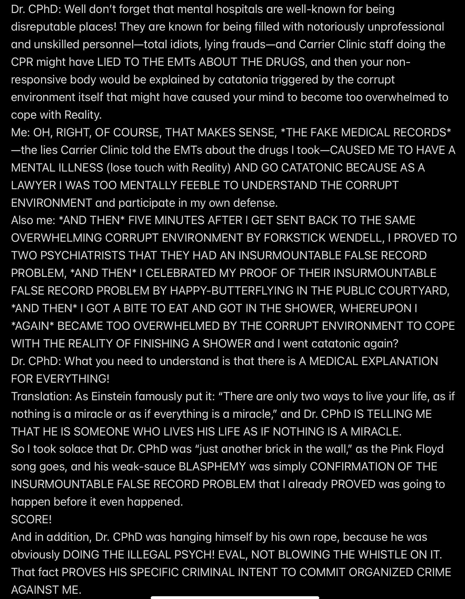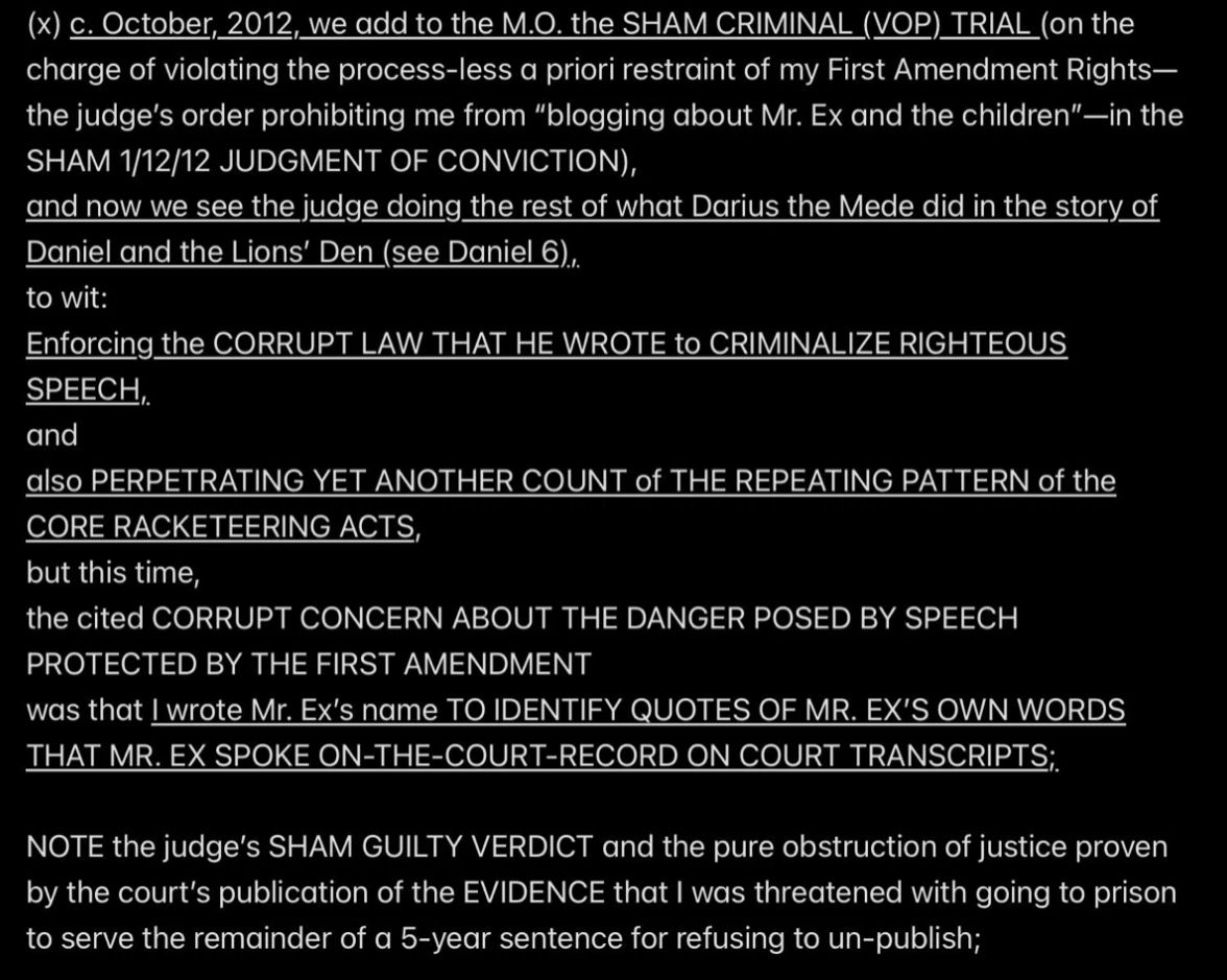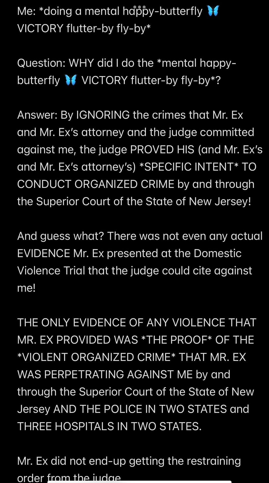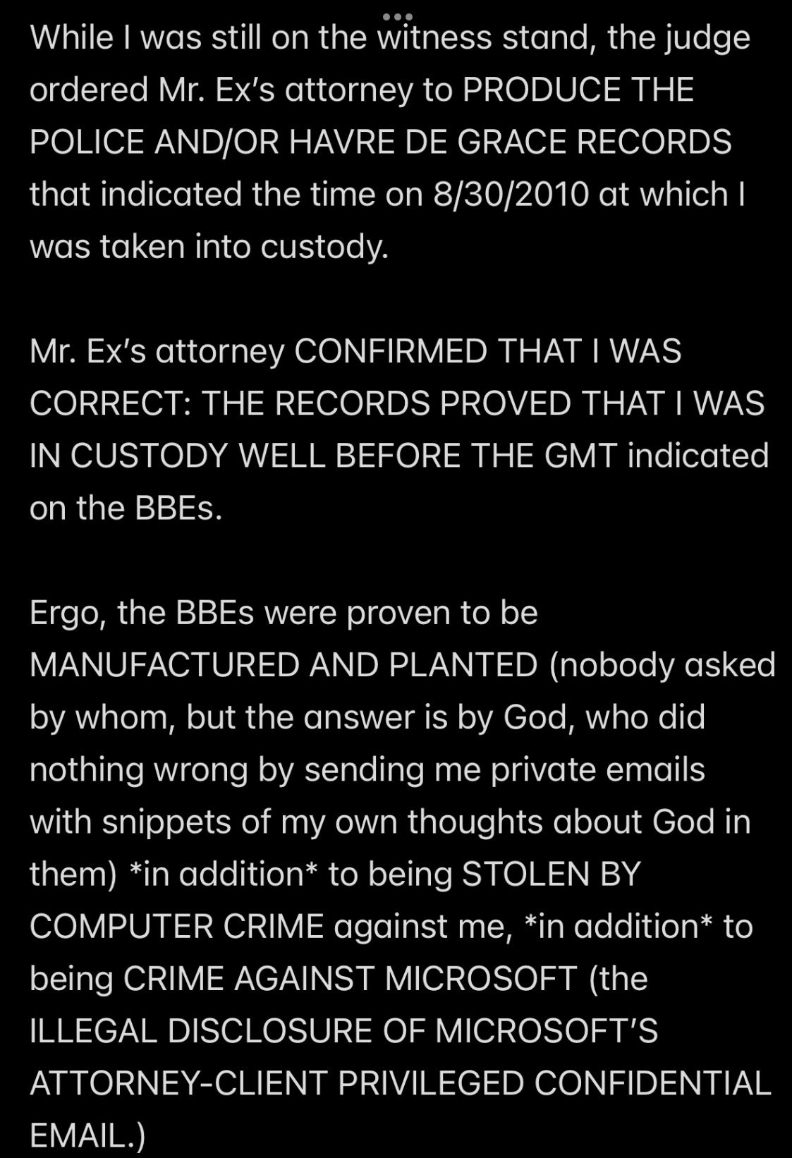 e.g., when Wendell was telling people in my “contacts list” (via email) that I had a “mental illness” that was causing me to FALSELY ACCUSE MR. EX MBA *AND WENDELL* OF ABUSE,