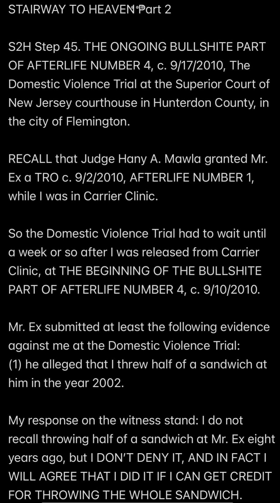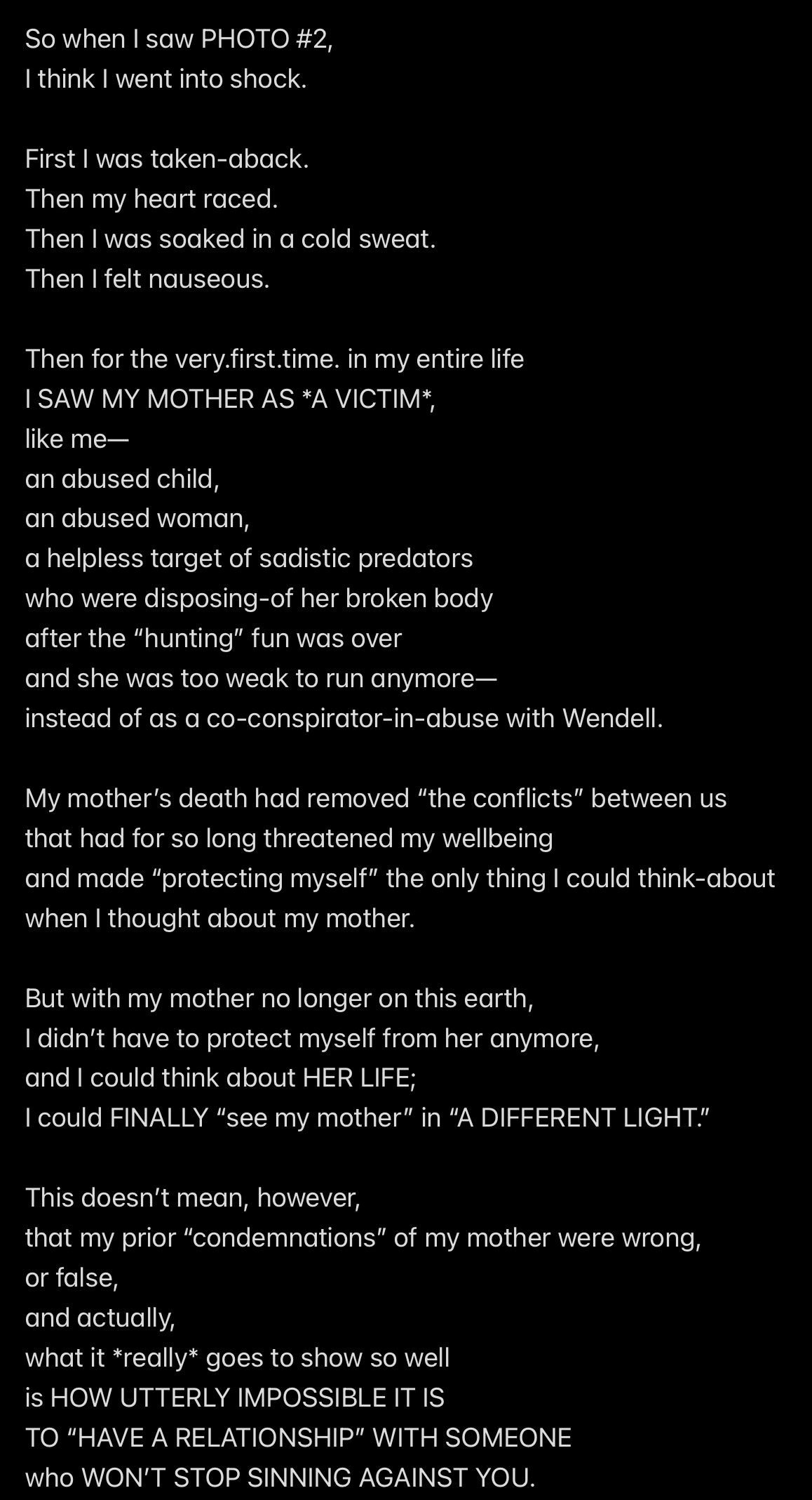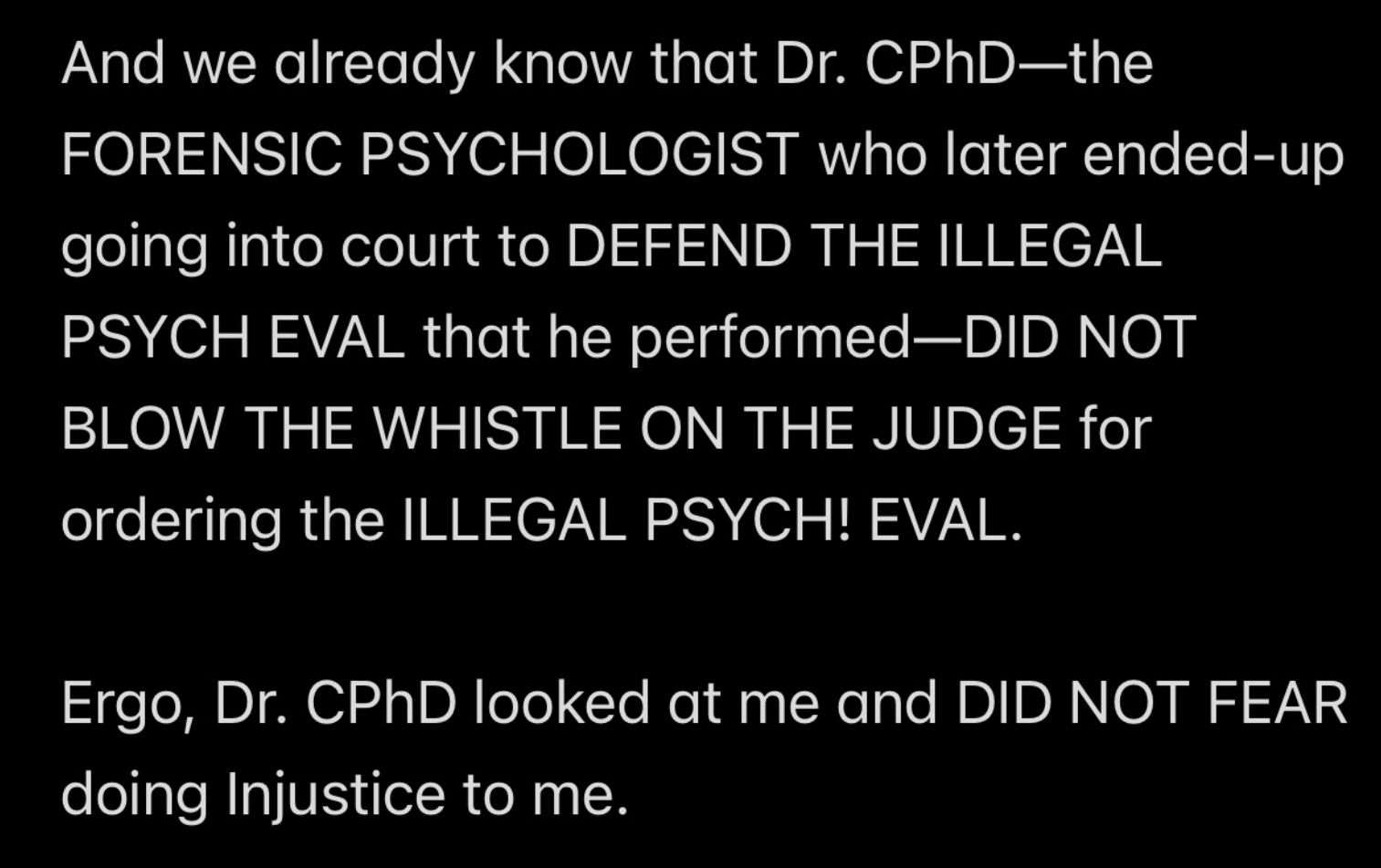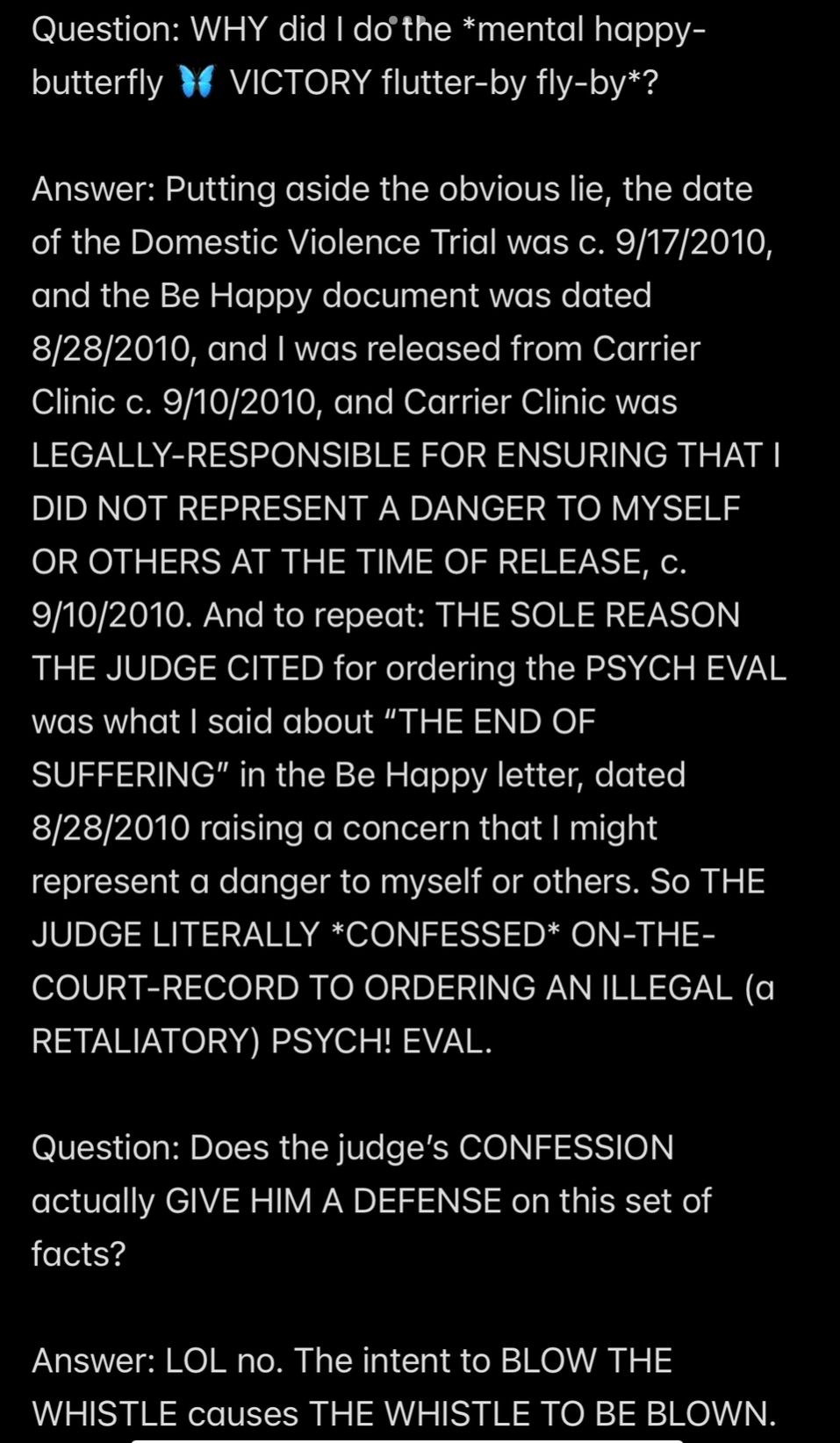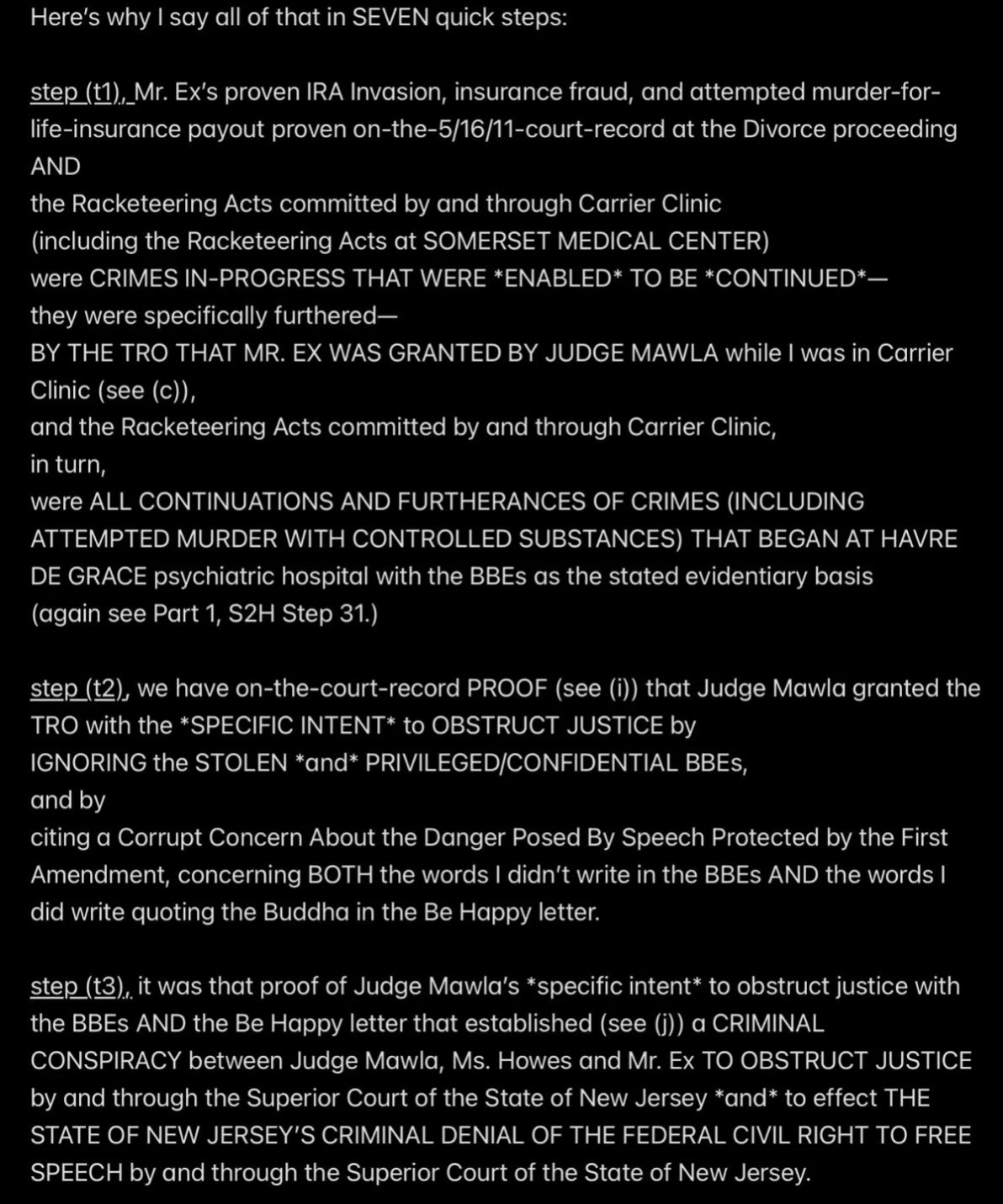 e.g., when Wendell was telling people in my “contacts list” (via email) that I had a “mental illness” that was causing me to FALSELY ACCUSE MR. EX MBA *AND WENDELL* OF ABUSE,