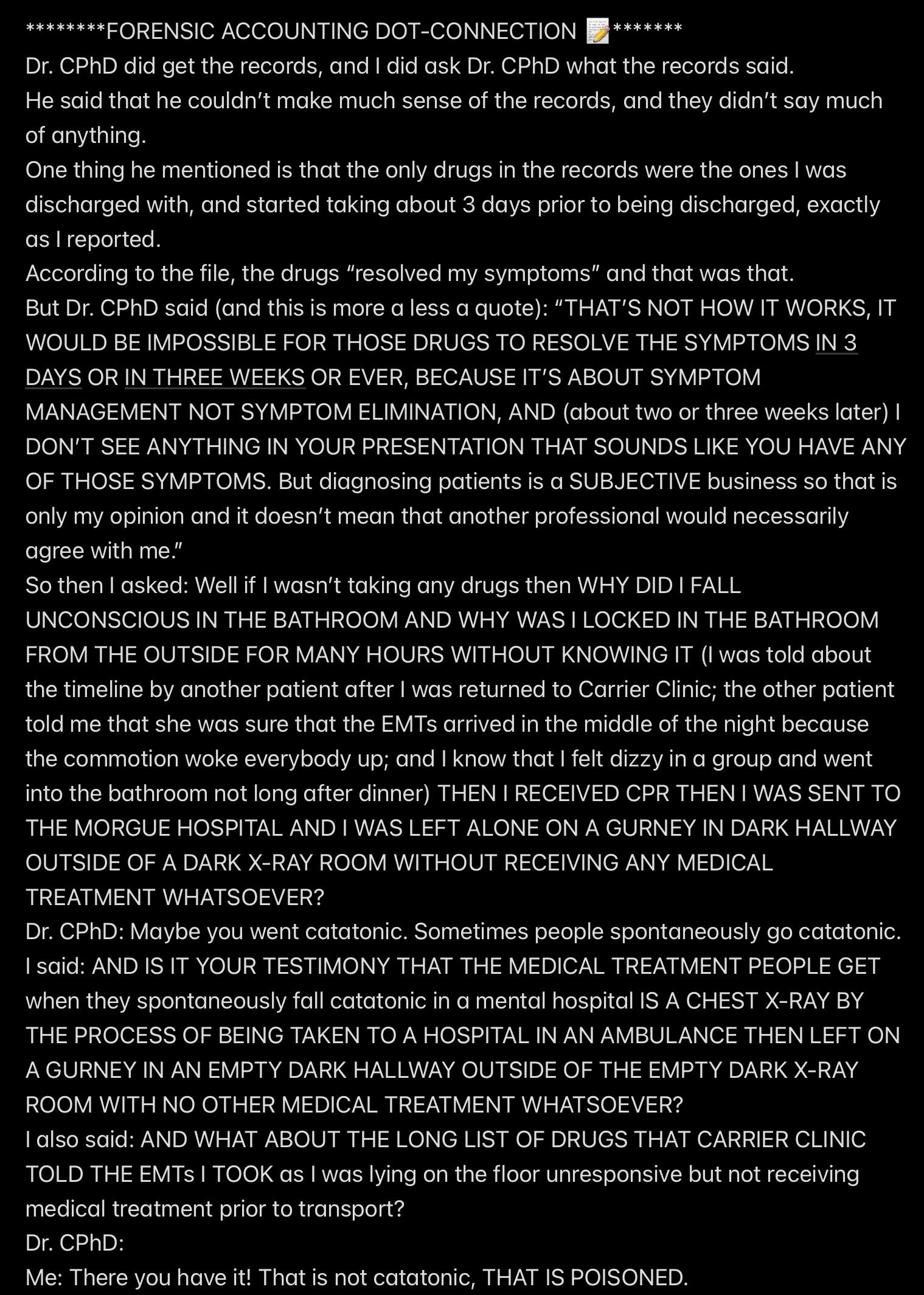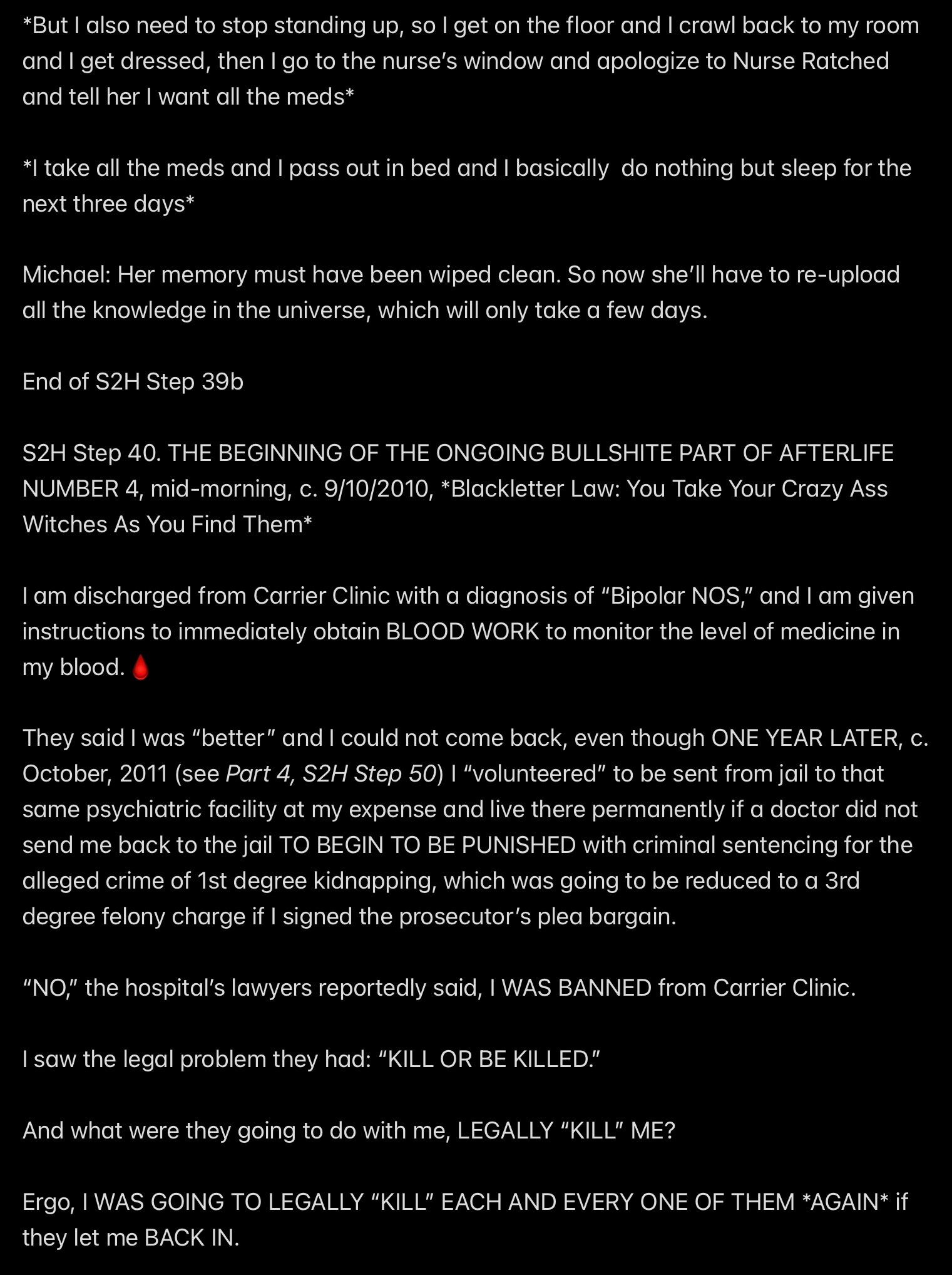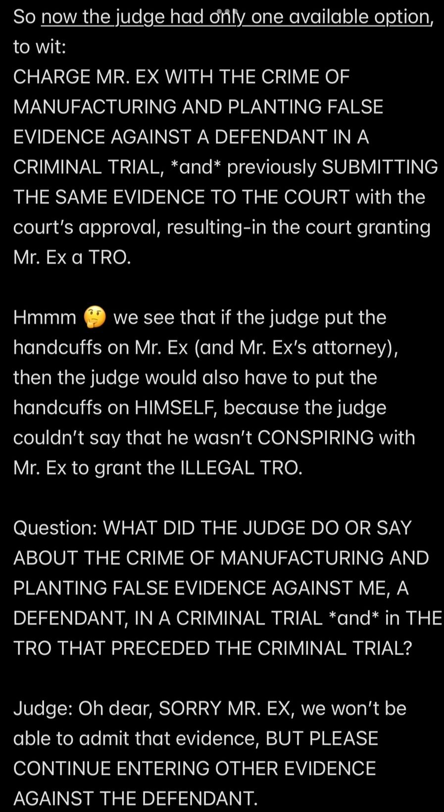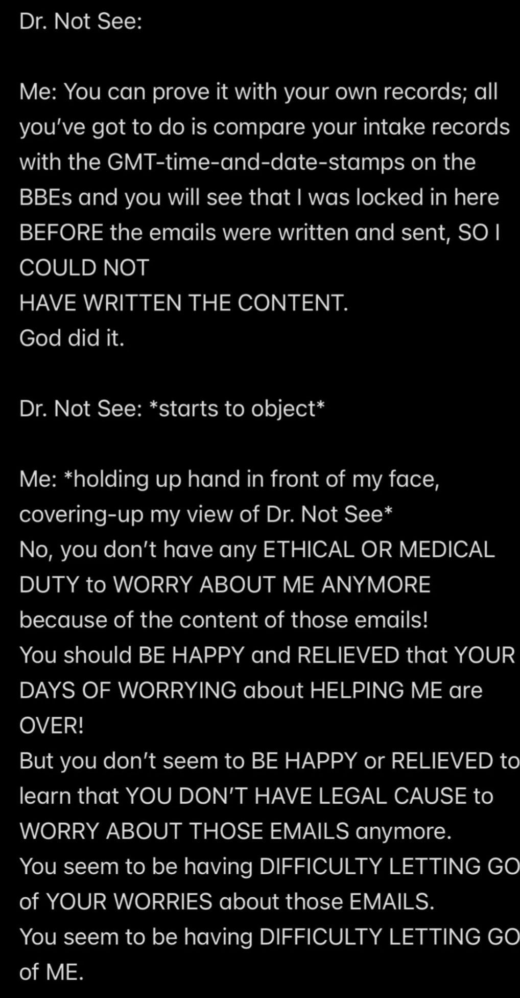 e.g., when Wendell was telling people in my “contacts list” (via email) that I had a “mental illness” that was causing me to FALSELY ACCUSE MR. EX MBA *AND WENDELL* OF ABUSE,