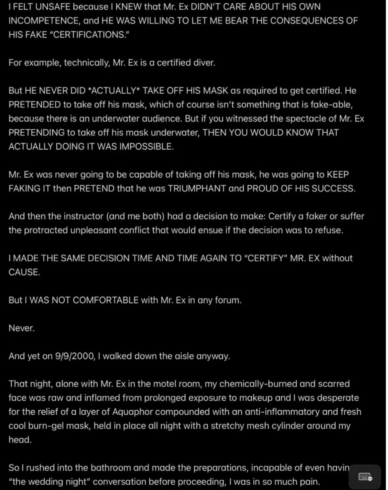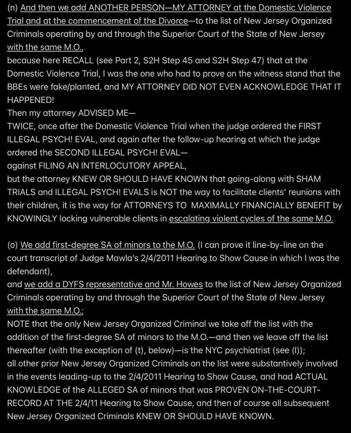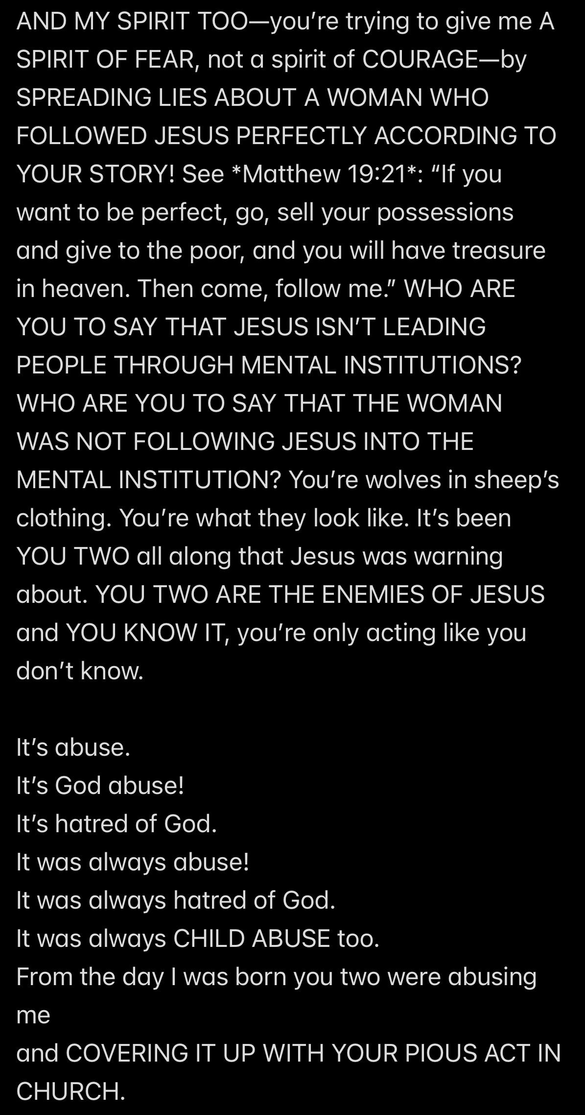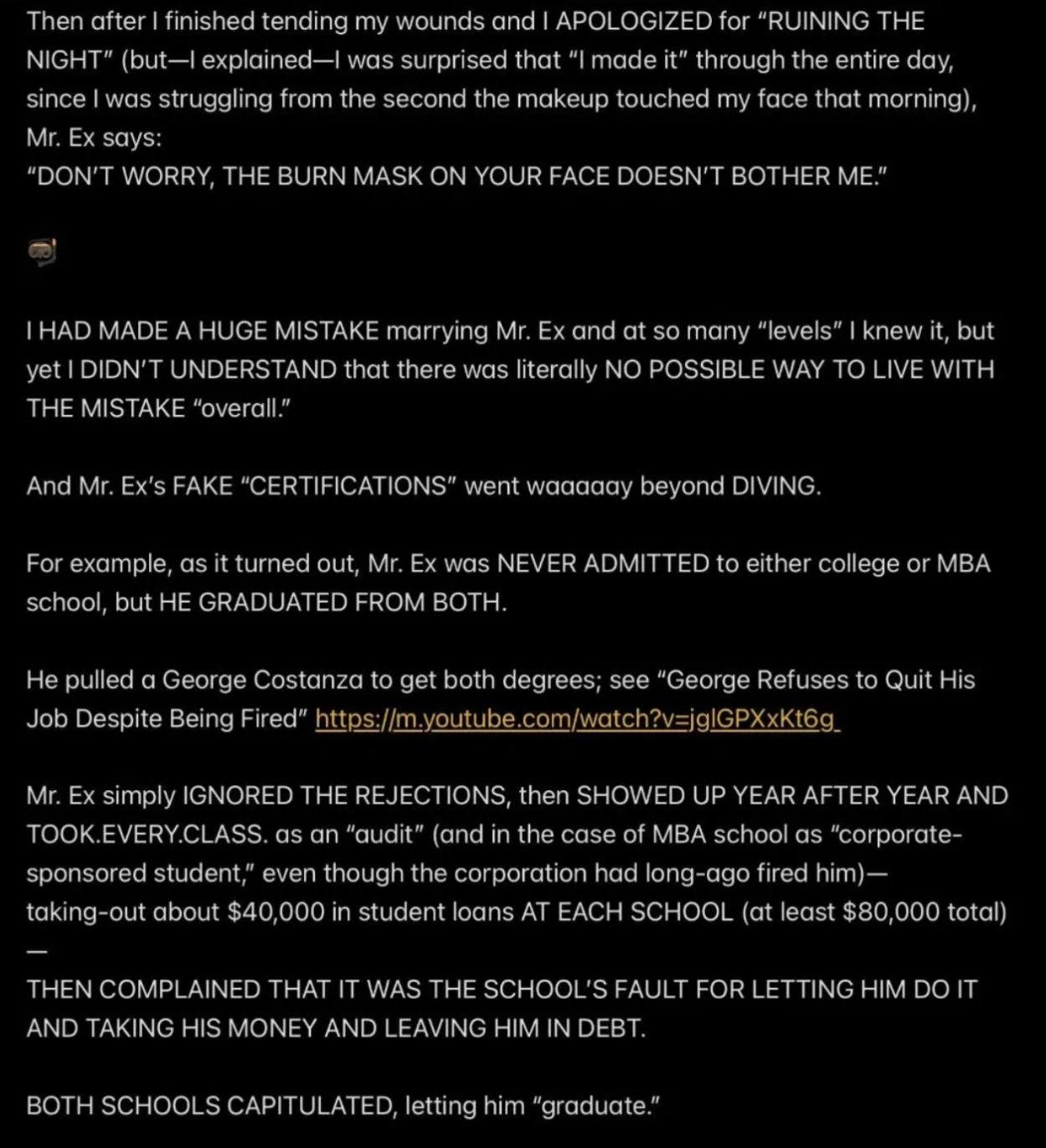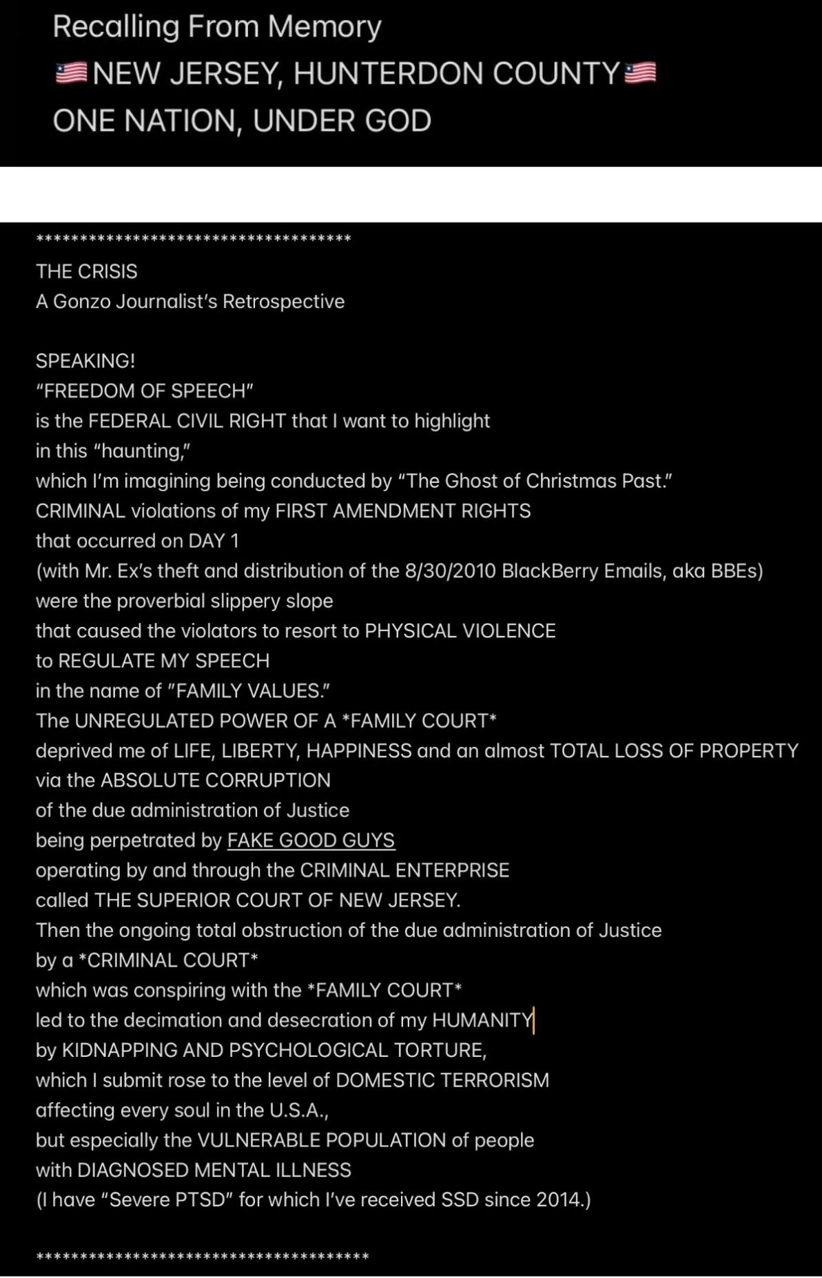 e.g., when Wendell was telling people in my “contacts list” (via email) that I had a “mental illness” that was causing me to FALSELY ACCUSE MR. EX MBA *AND WENDELL* OF ABUSE,