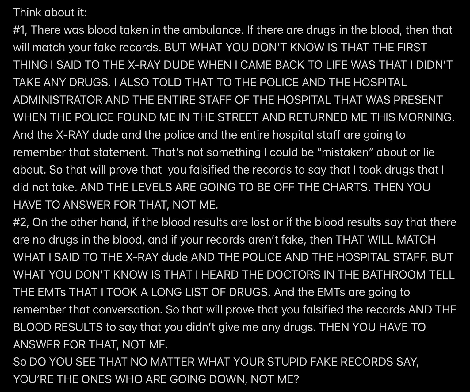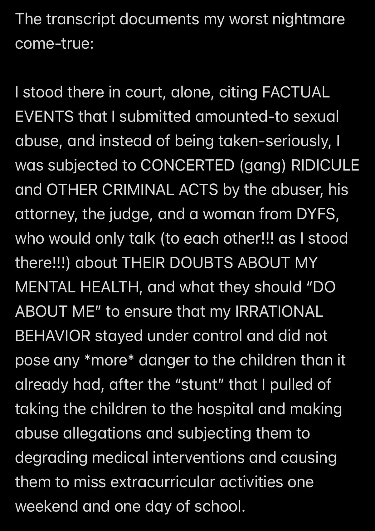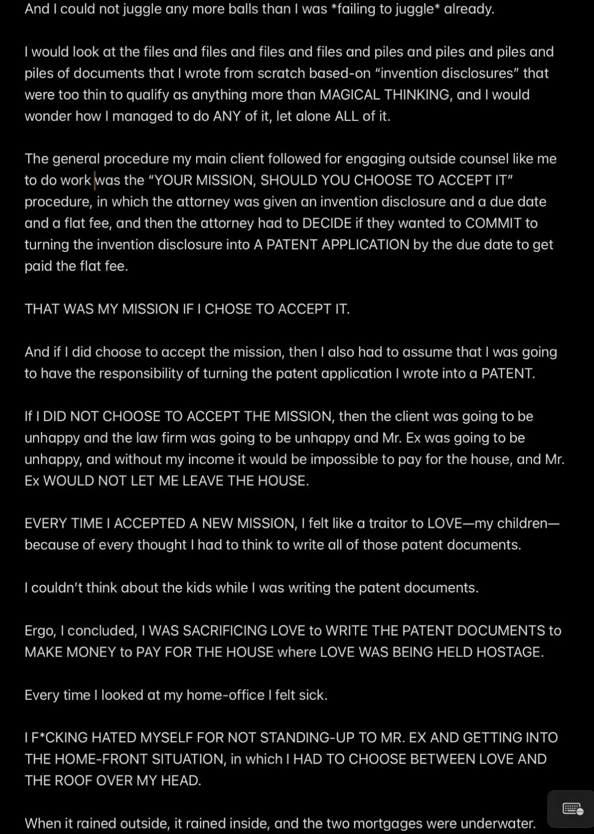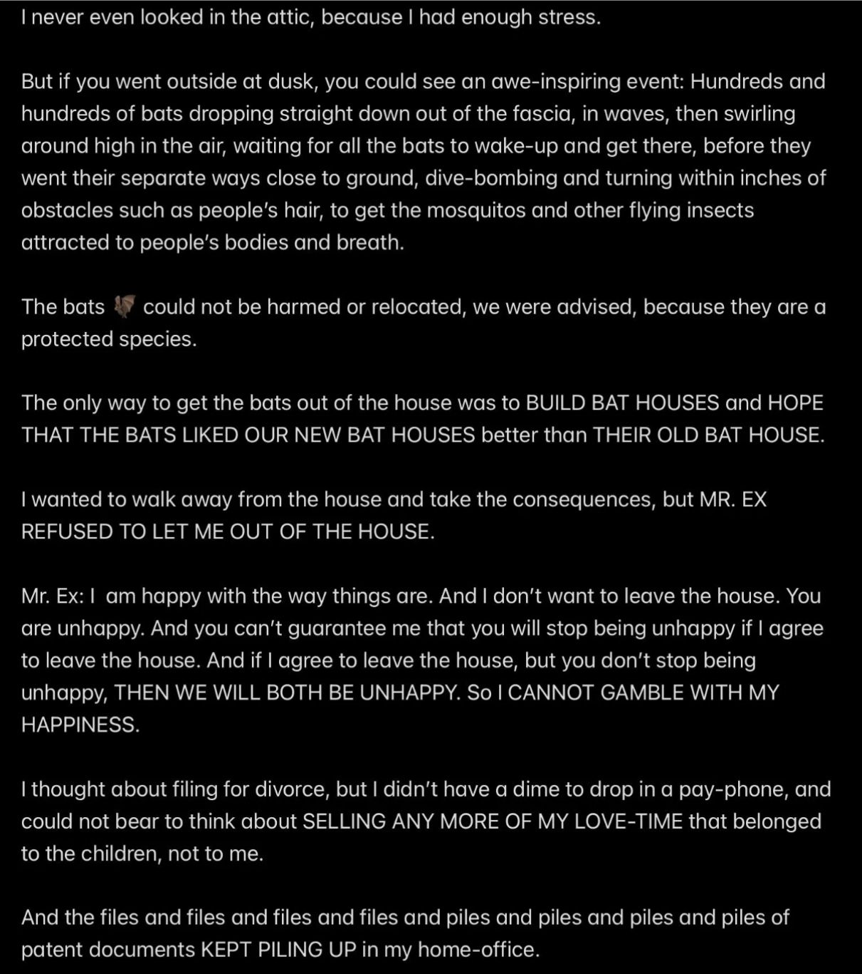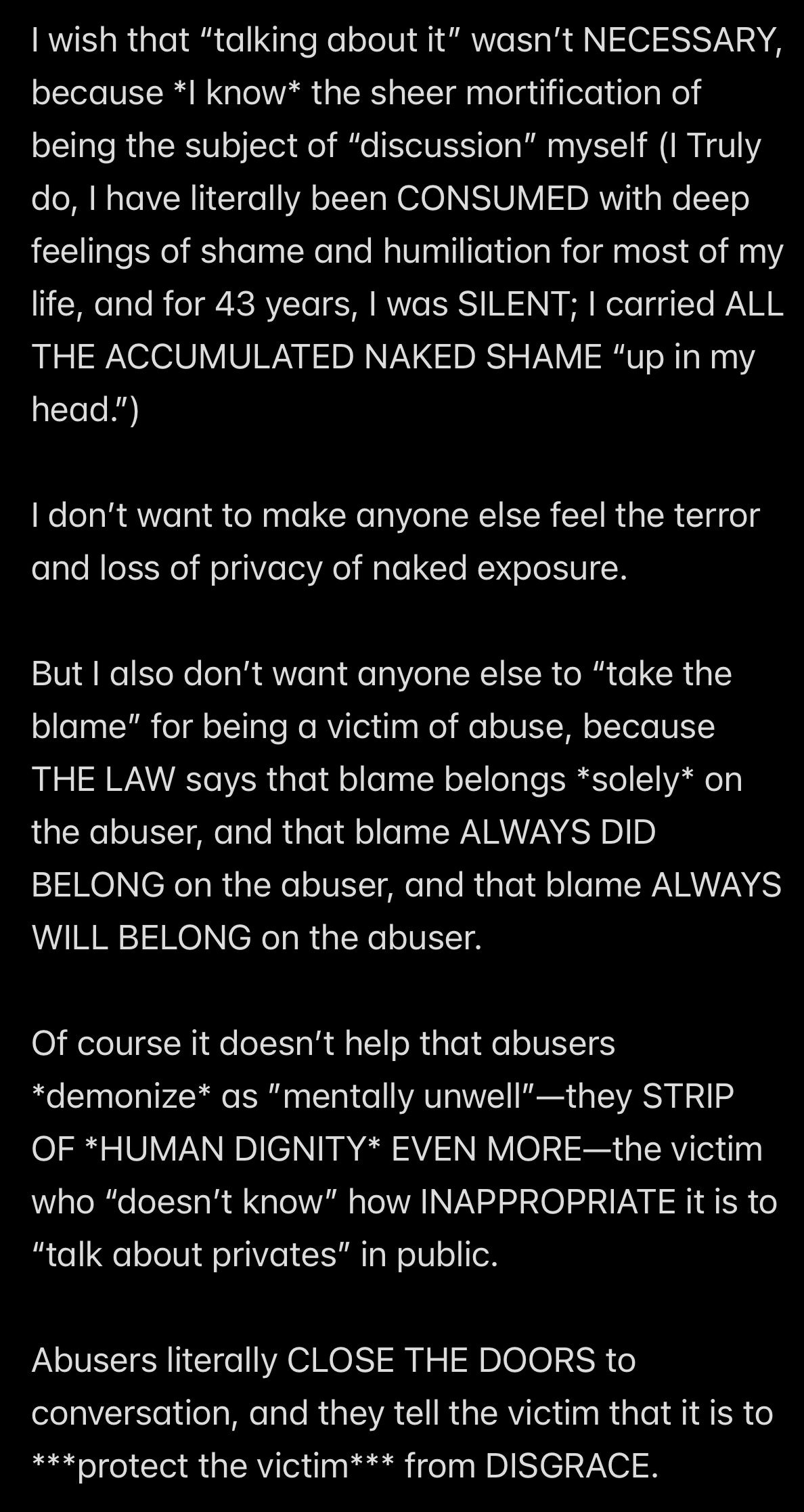 e.g., when Wendell was telling people in my “contacts list” (via email) that I had a “mental illness” that was causing me to FALSELY ACCUSE MR. EX MBA *AND WENDELL* OF ABUSE,
