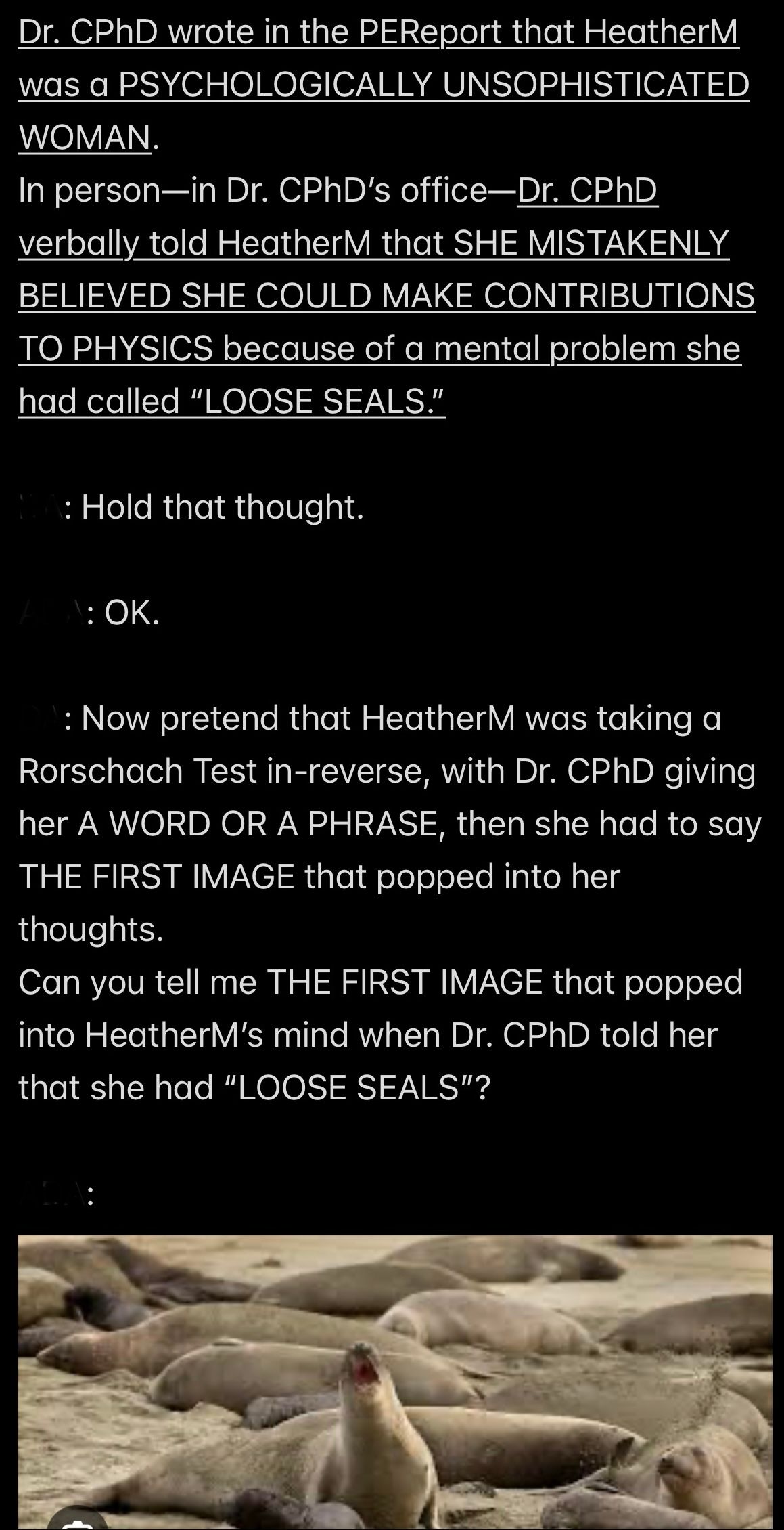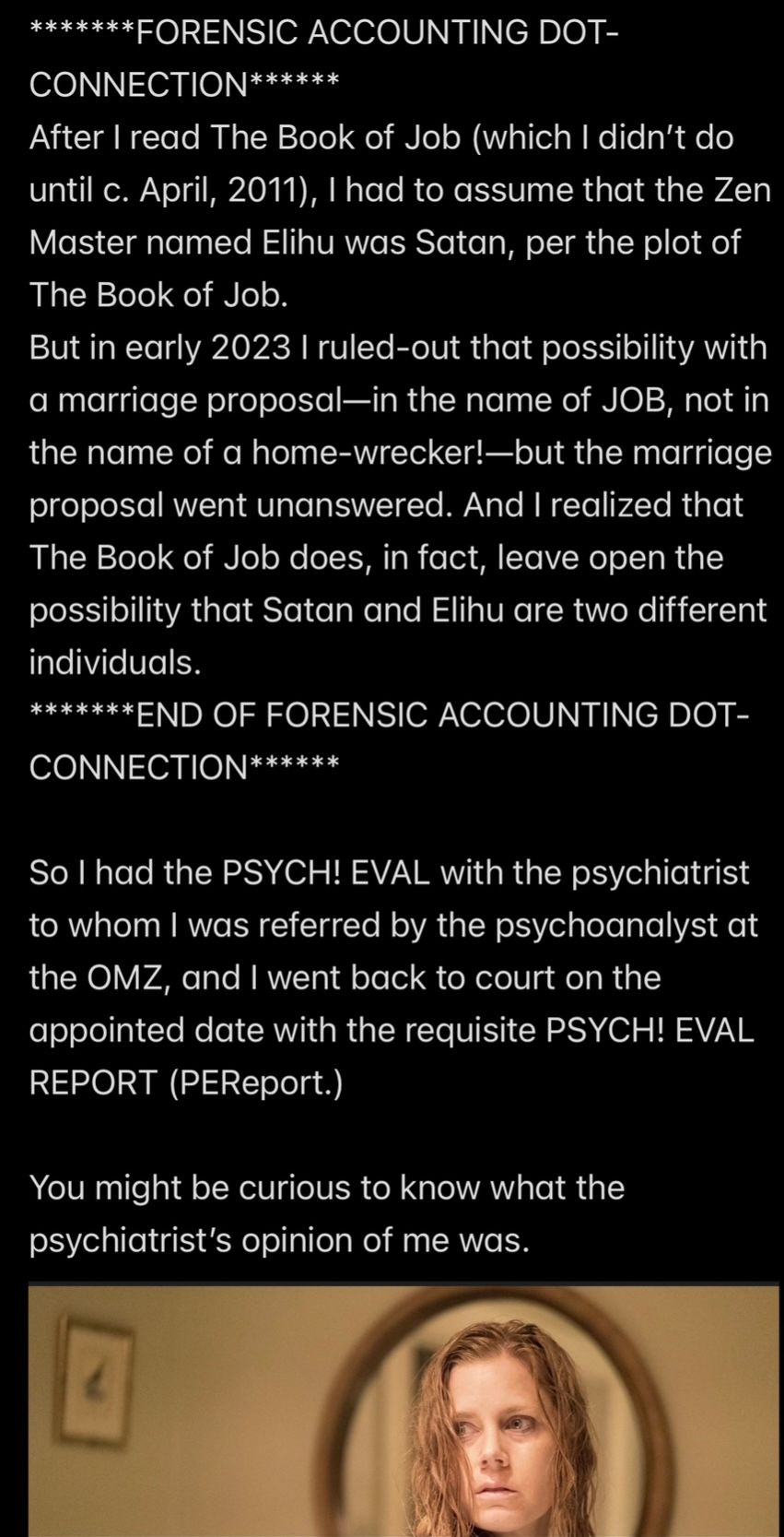 AND SHARON IS THE ONLY ONE OF THAT GROUP WHO IS DEAD; Sharon’s MORTALITY IS KNOWN, and that is a significant fact, which distinguishes Sharon from Satan and Mr. Ex MBA (whom we have shown cause to allege is immortal Injustice like Satan.)