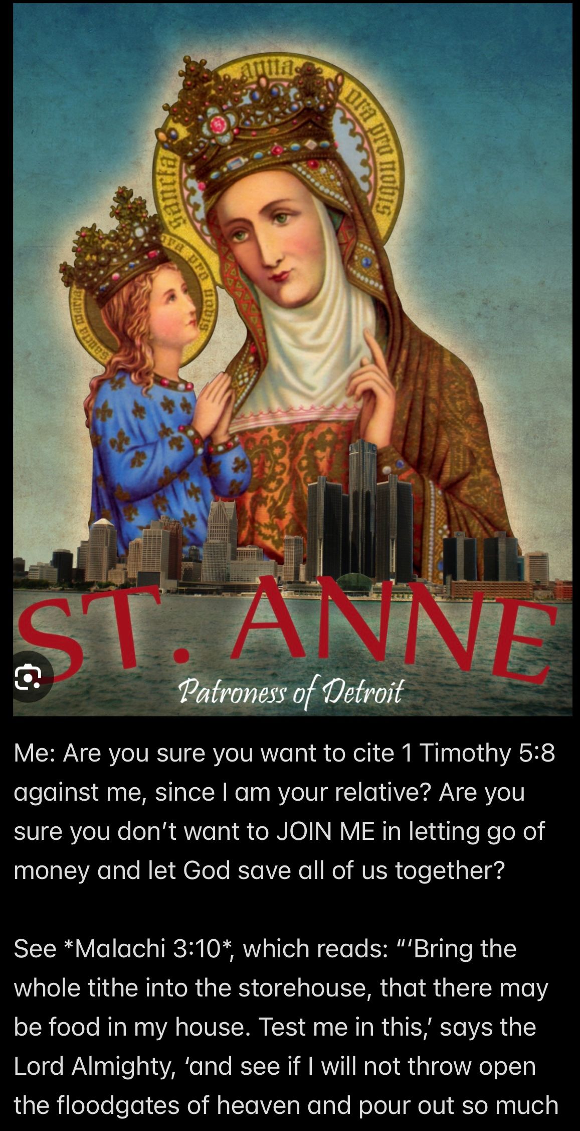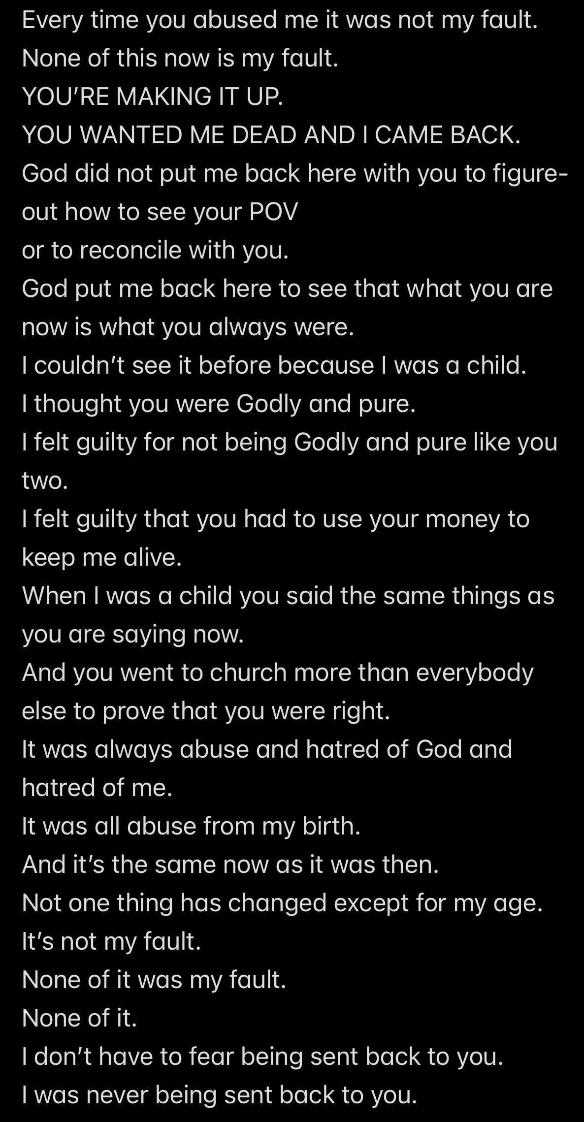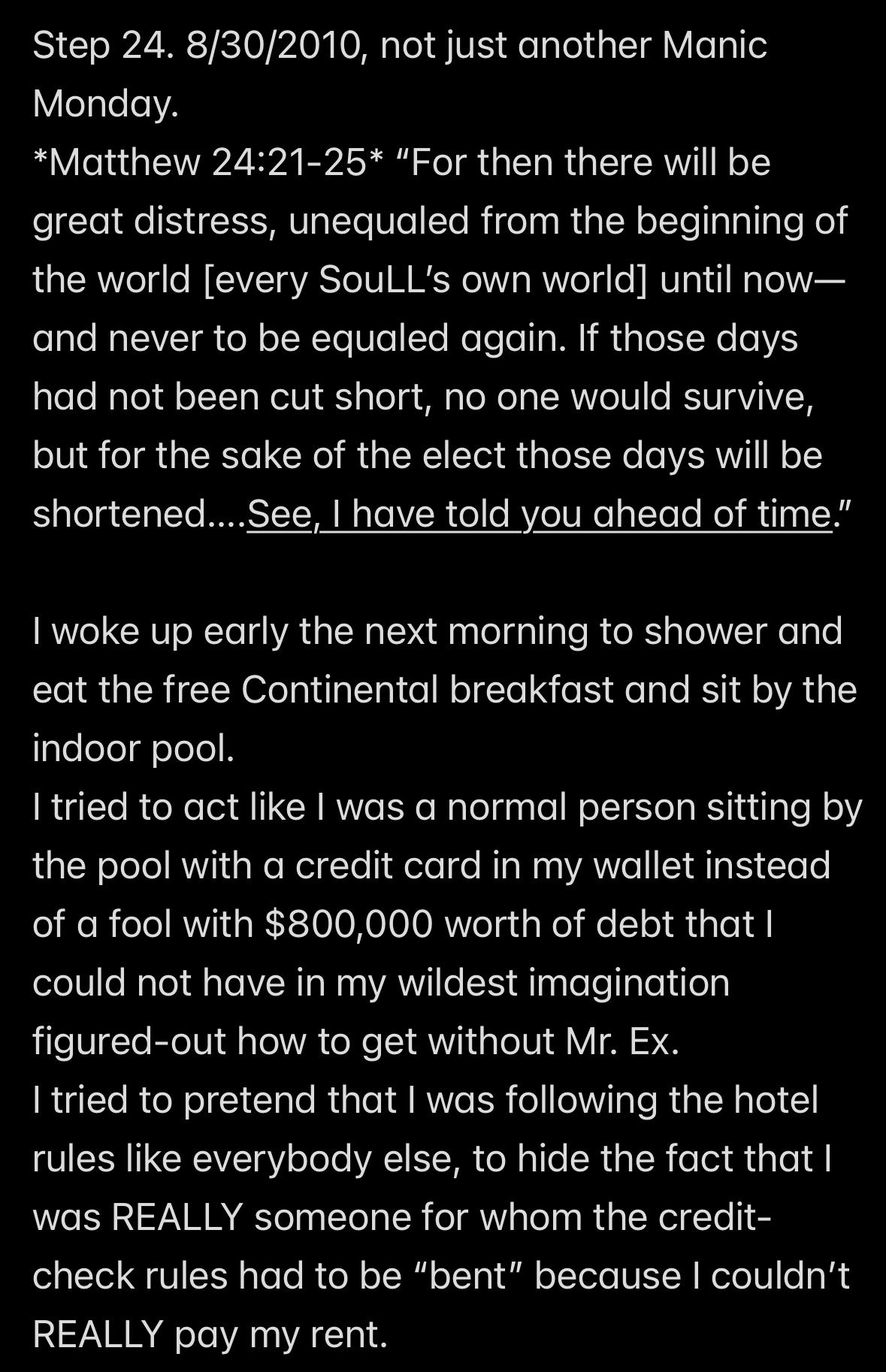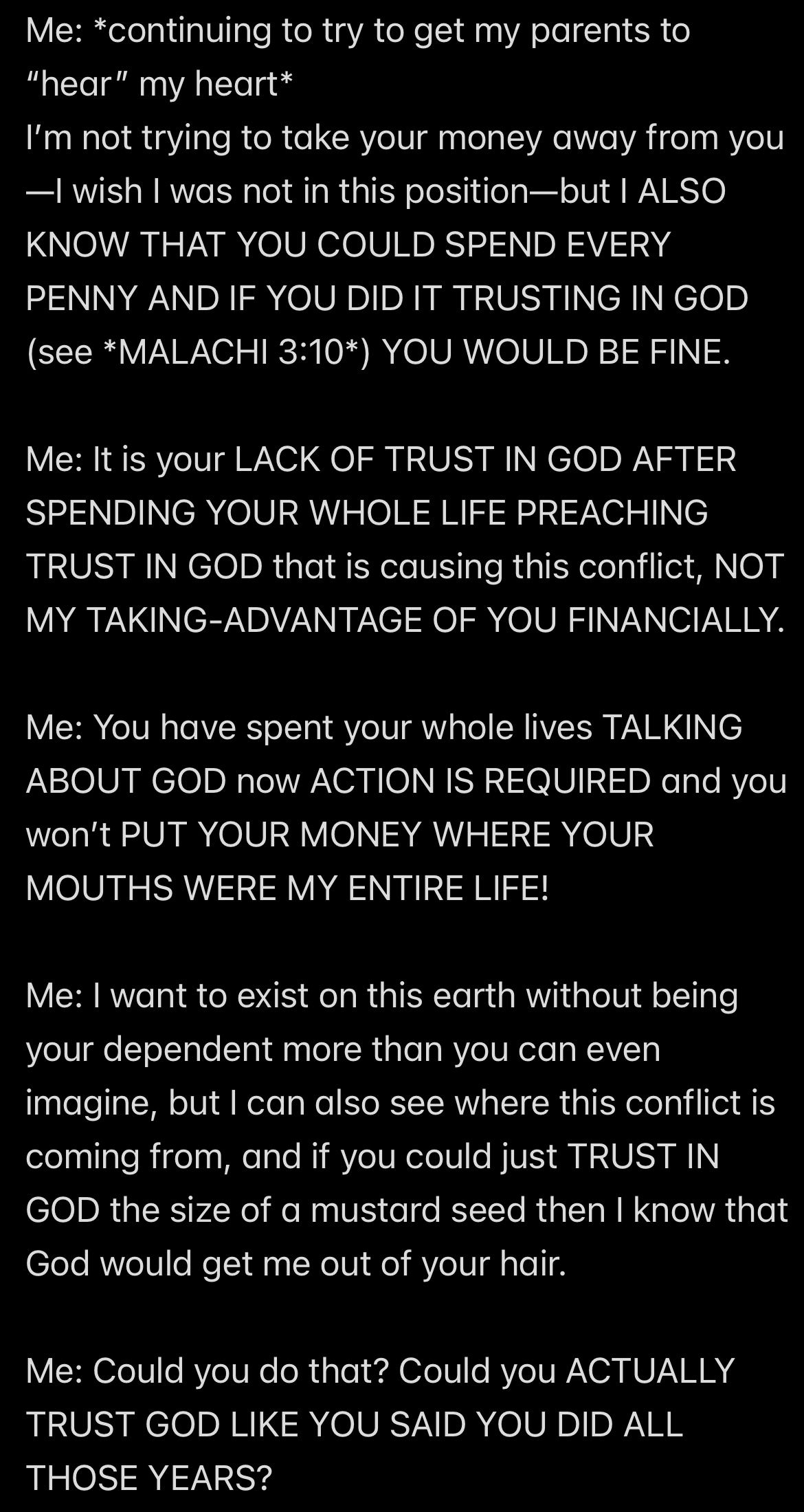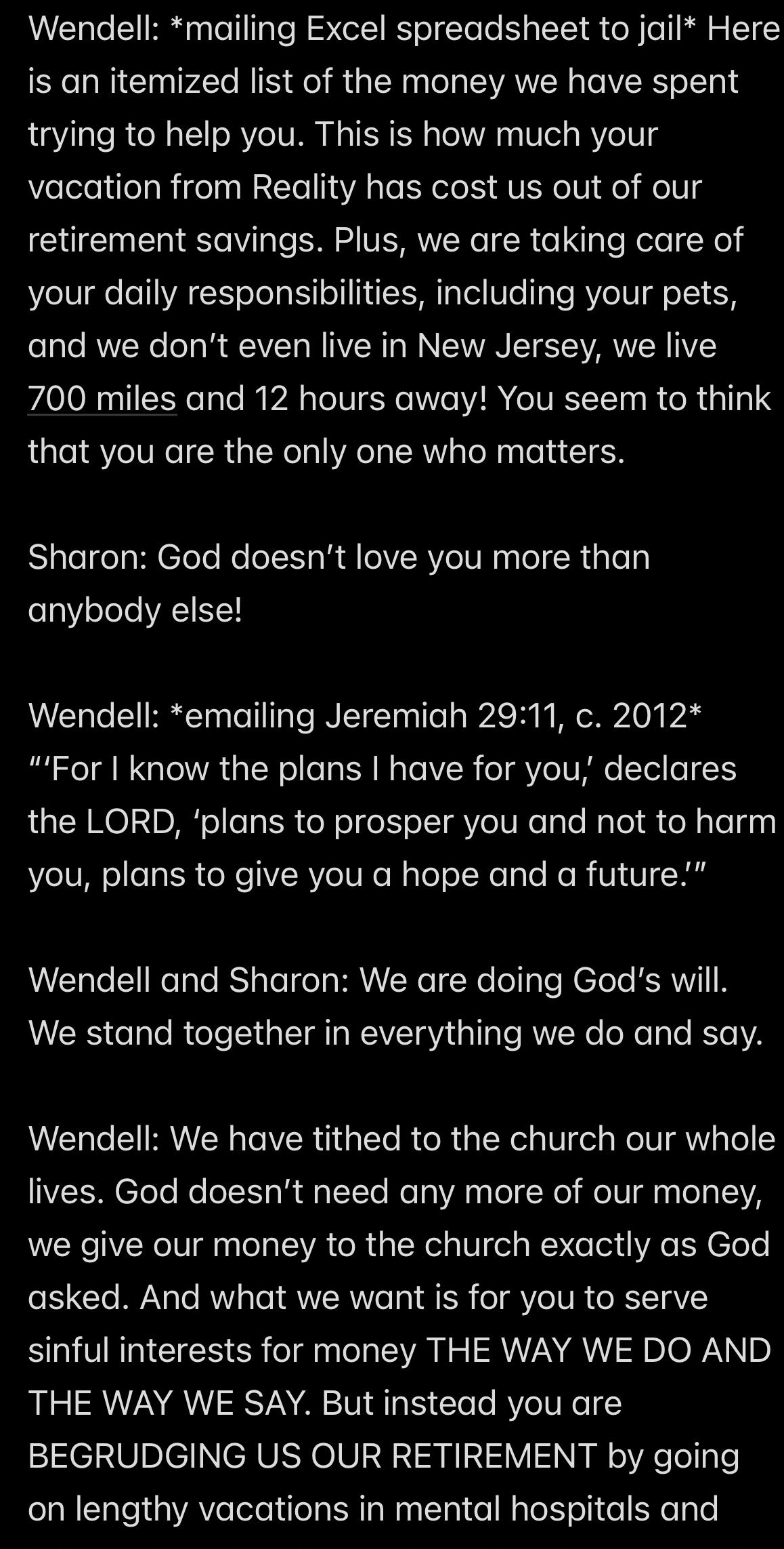 So Wendell FED ME AND KEPT A SPREADSHEET OF EXACTLY HOW MUCH MONEY MY SURVIVAL COST HIM IN US DOLLARS, but NEVER ONCE WAS WENDELL WITH ME *FOLLOWING JESUS’S WORD*!
