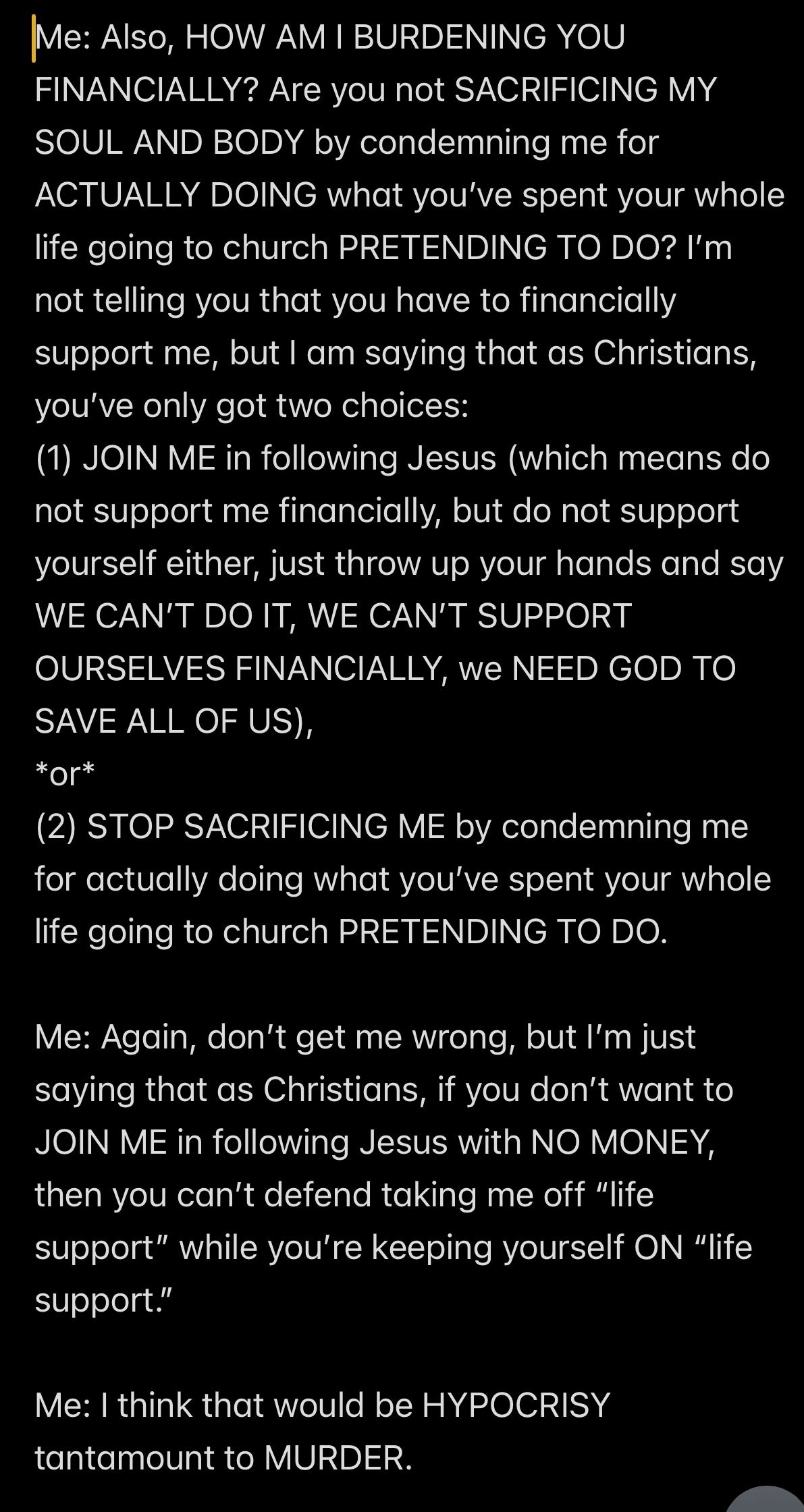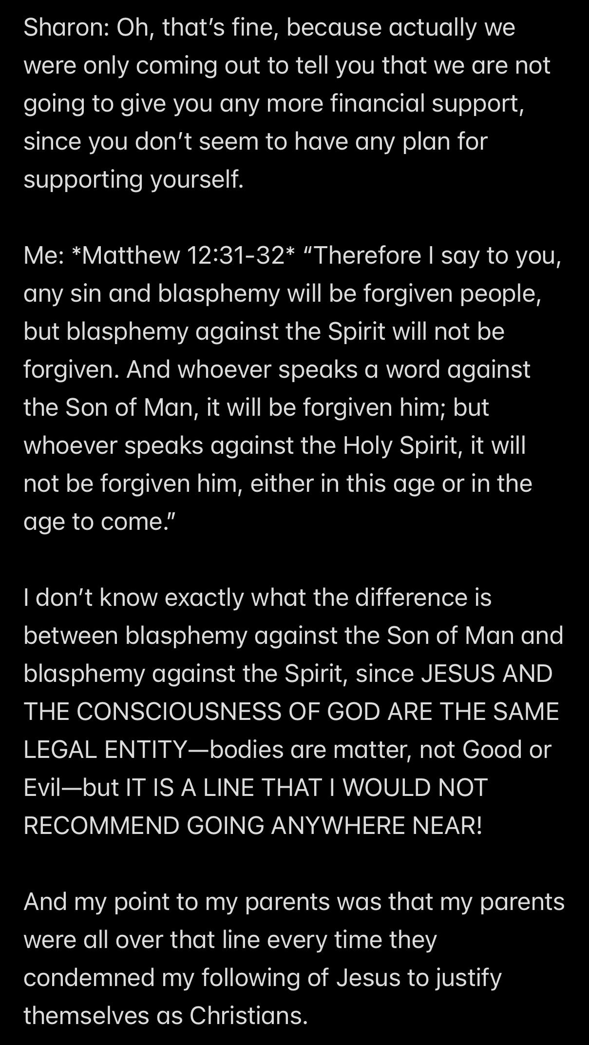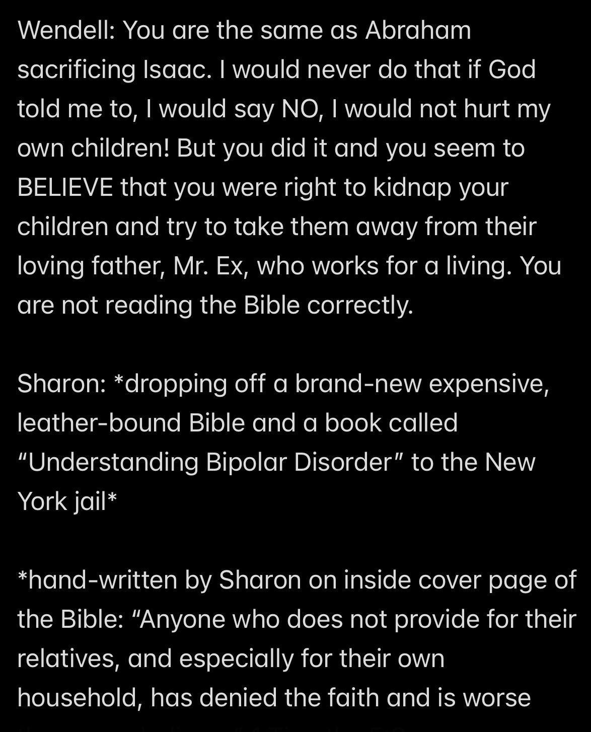 Wendell was 100 AGAINST ME AND *JESUS’S WORD*, despite being a lifelong espouser of *JESUS’S WORD*!