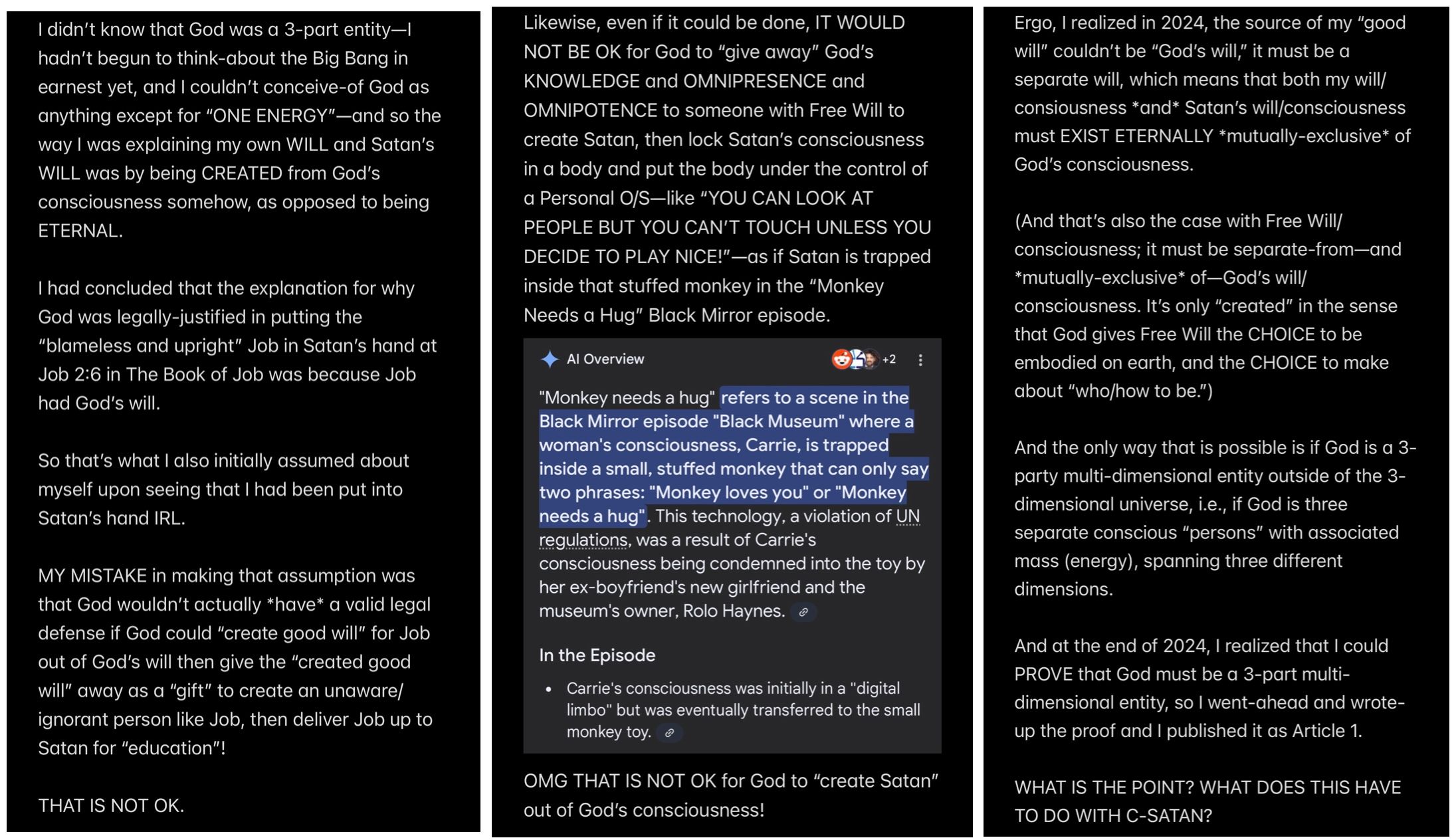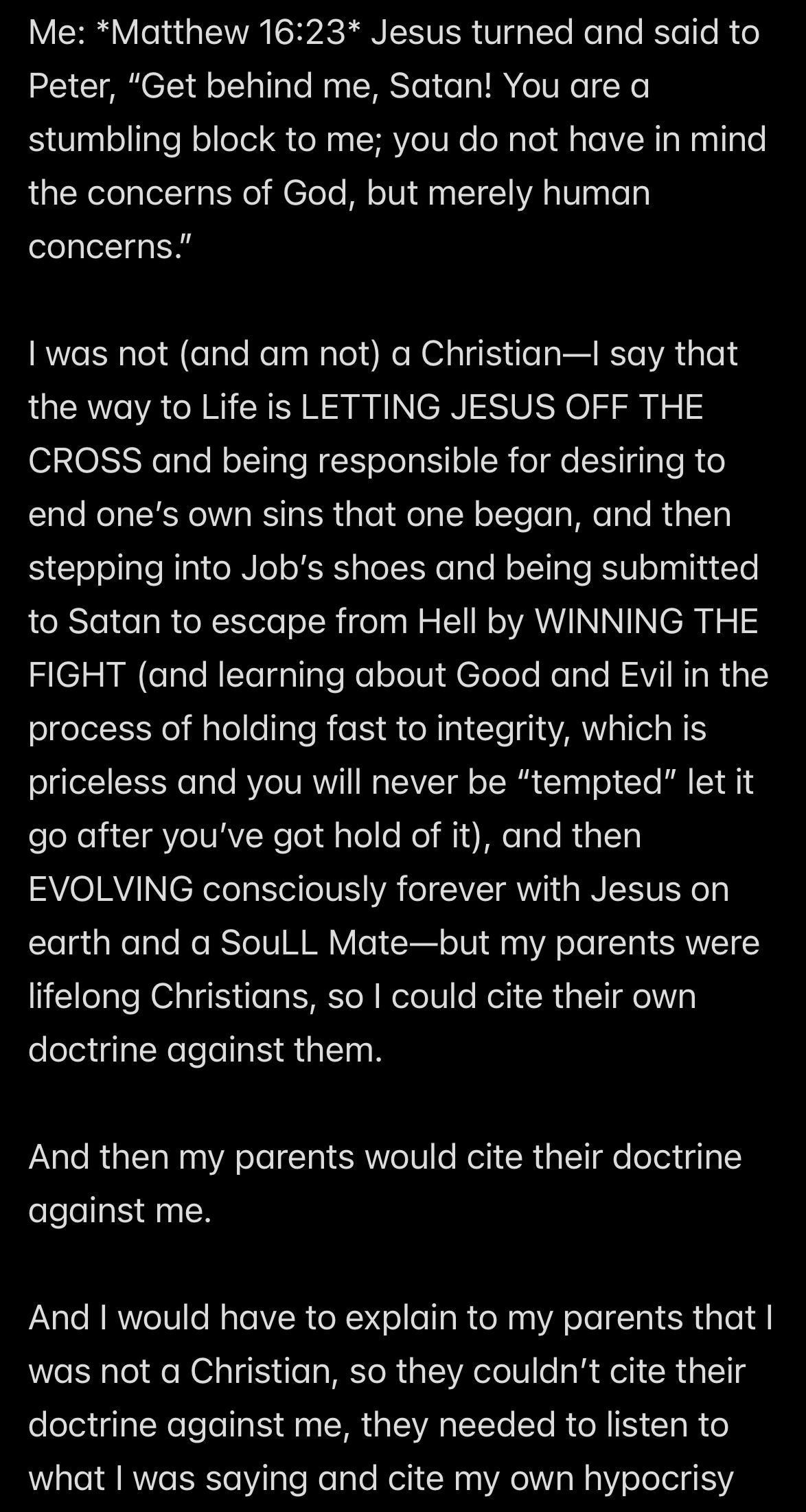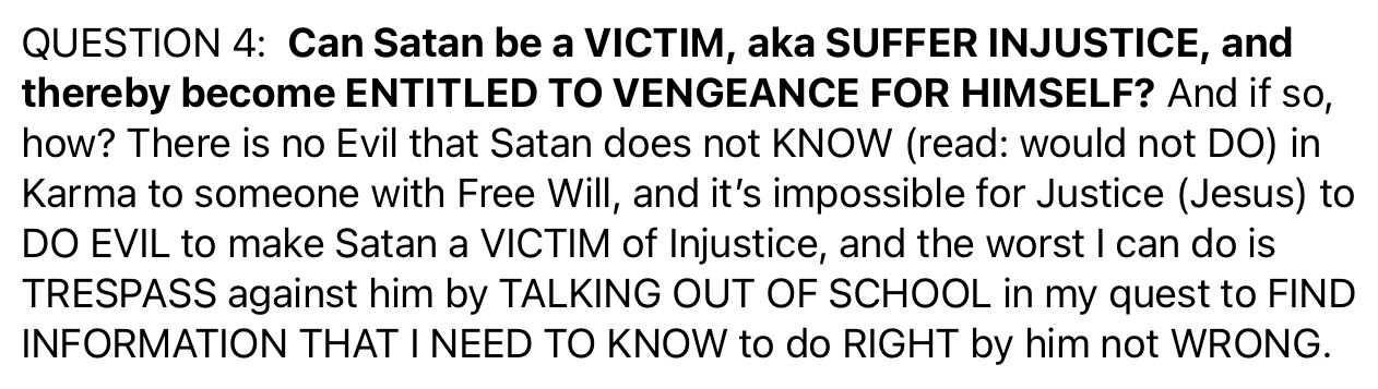 So again: Satan was EX’ed and this ironically caused Satan to fall into sin while Satan was TRYING to murder me to win a BET with Jesus about my MORTALITY.