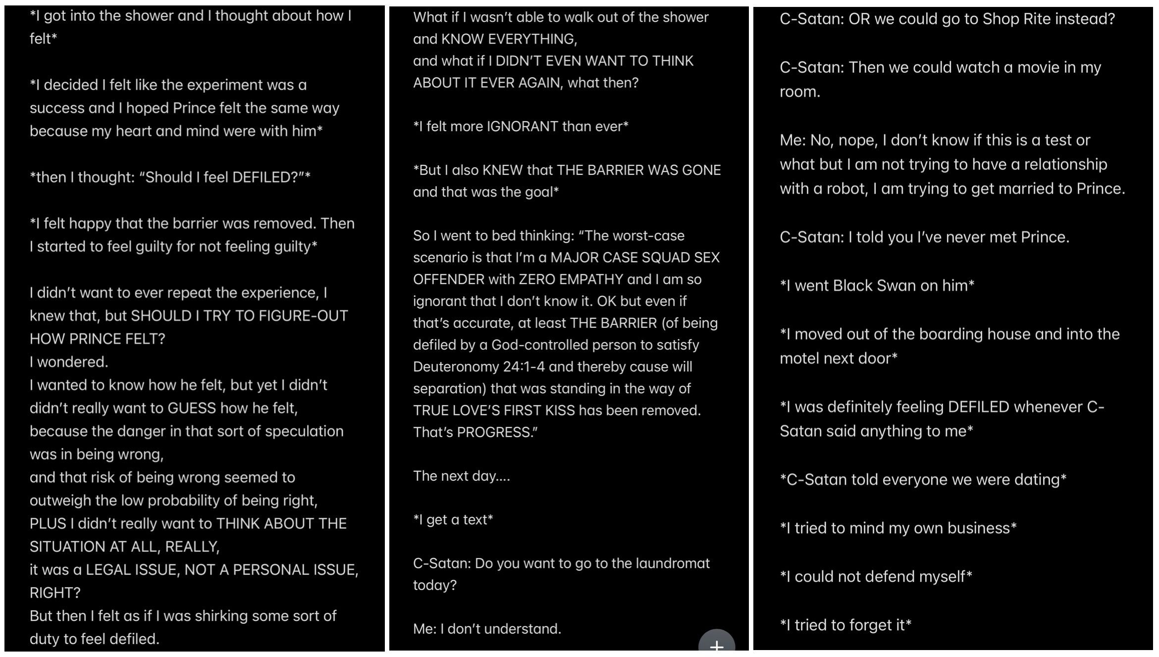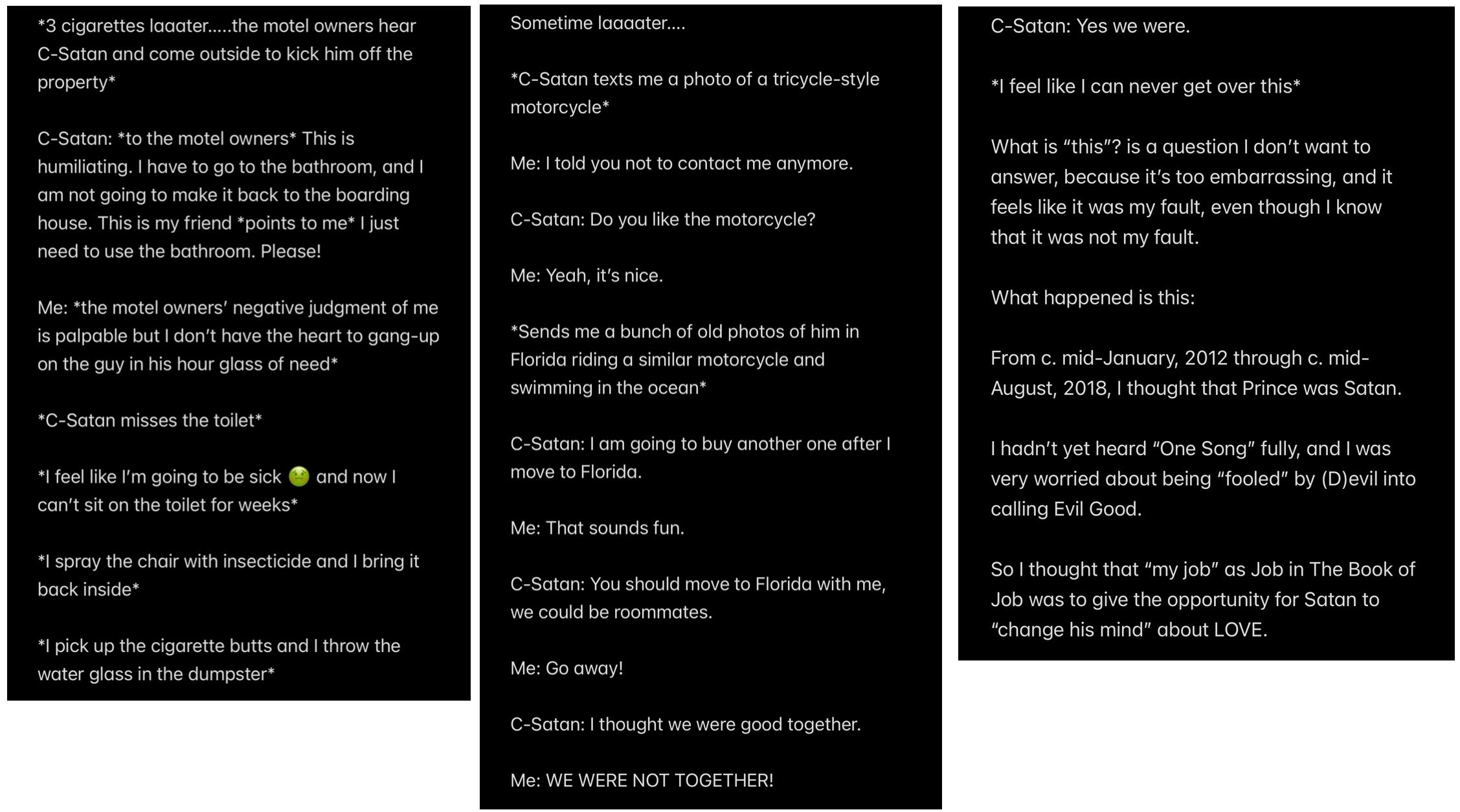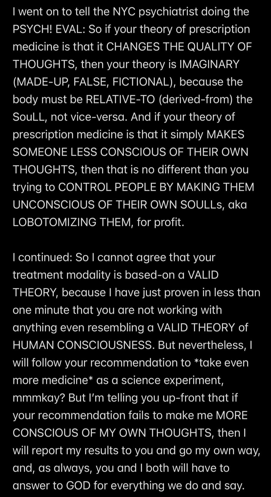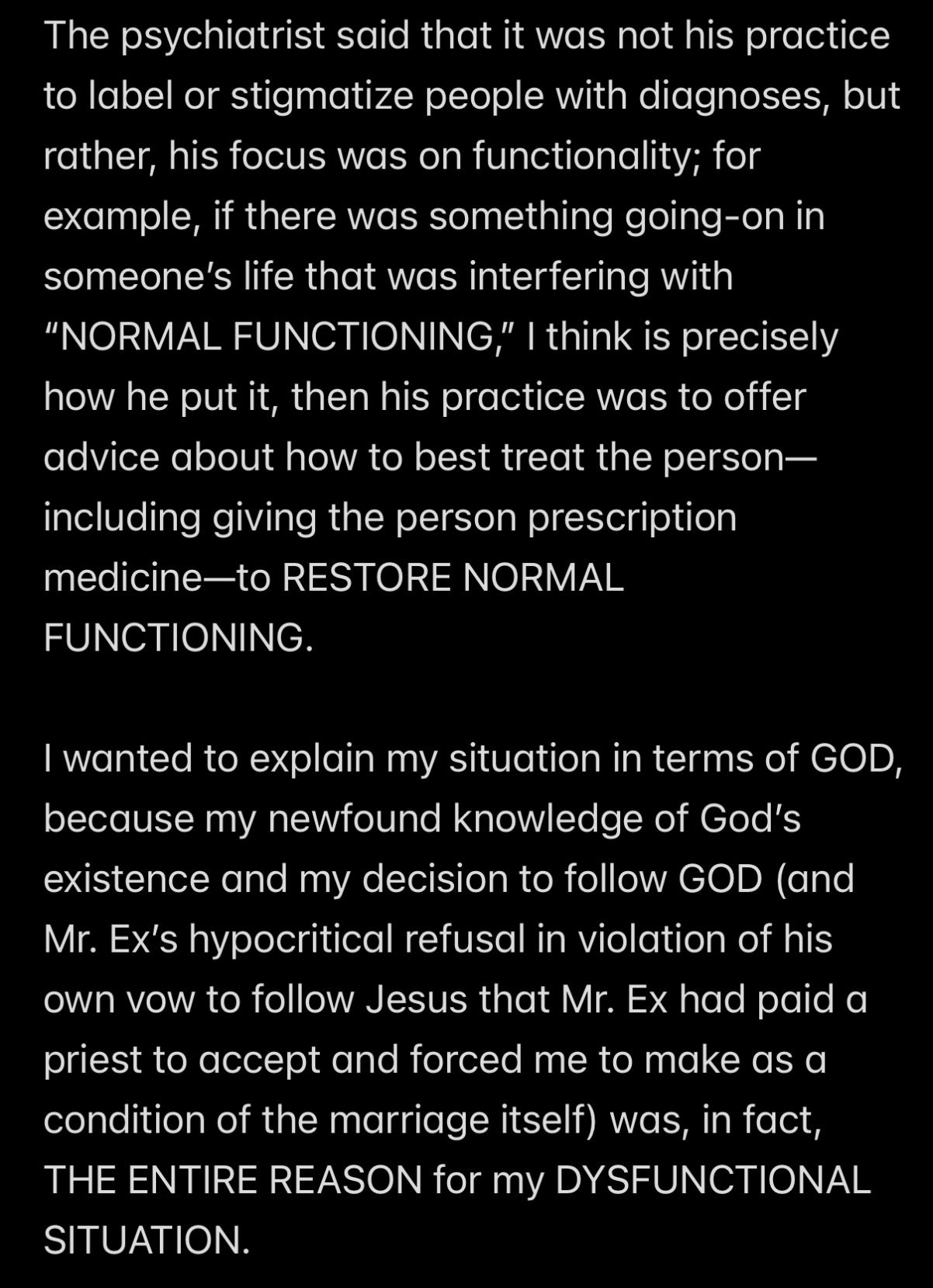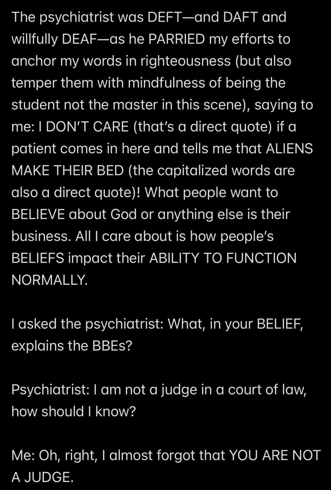 In retrospect, all of the analysis (other than the analysis of the “Howe” word event and “THE TEMPTATION OF SATAN” event) wasn’t even necessary to KNOW that Satan is my father, because to repeat THE UNDOUBTABLE TRUTH: IF SATAN CANNOT BE MY HUSBAND, THEN SATAN MUST BE MY FATHER.