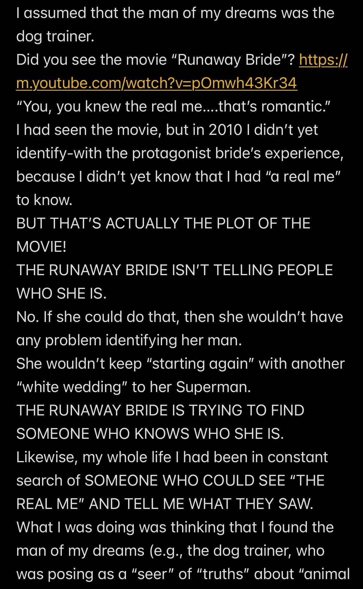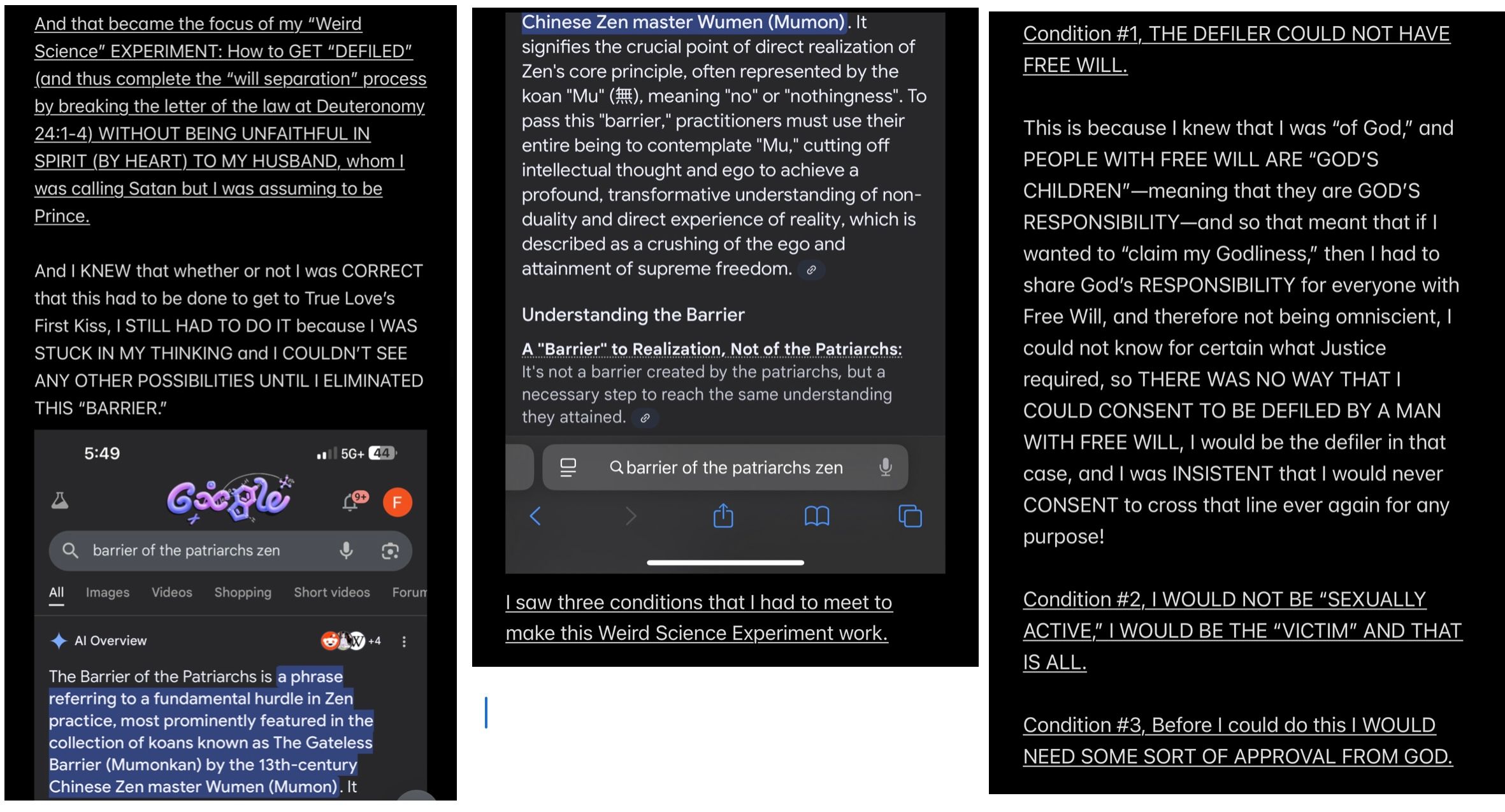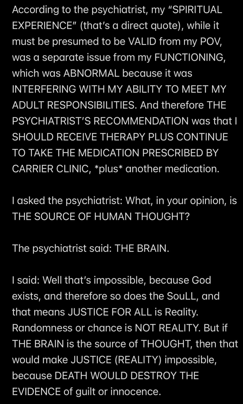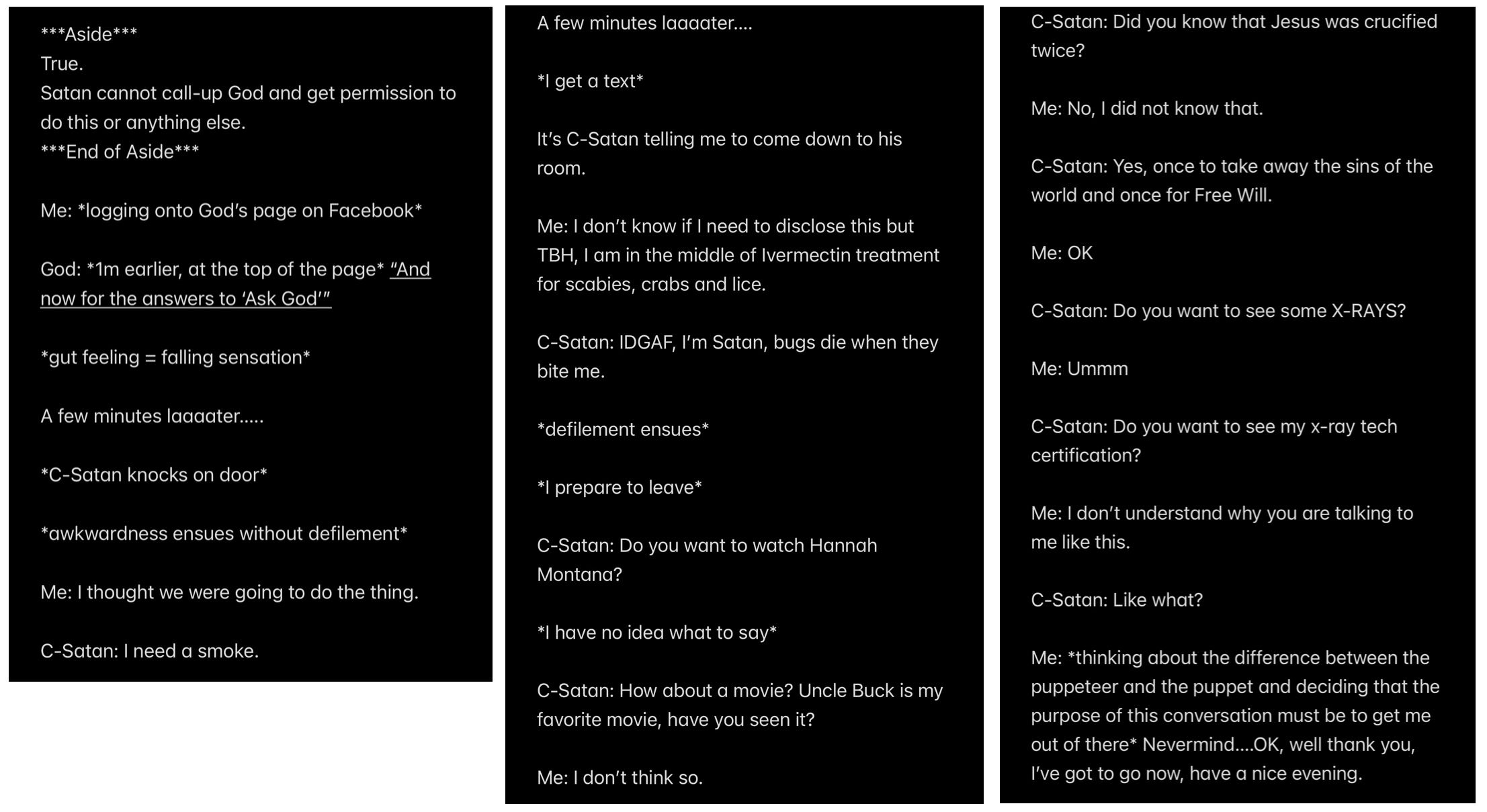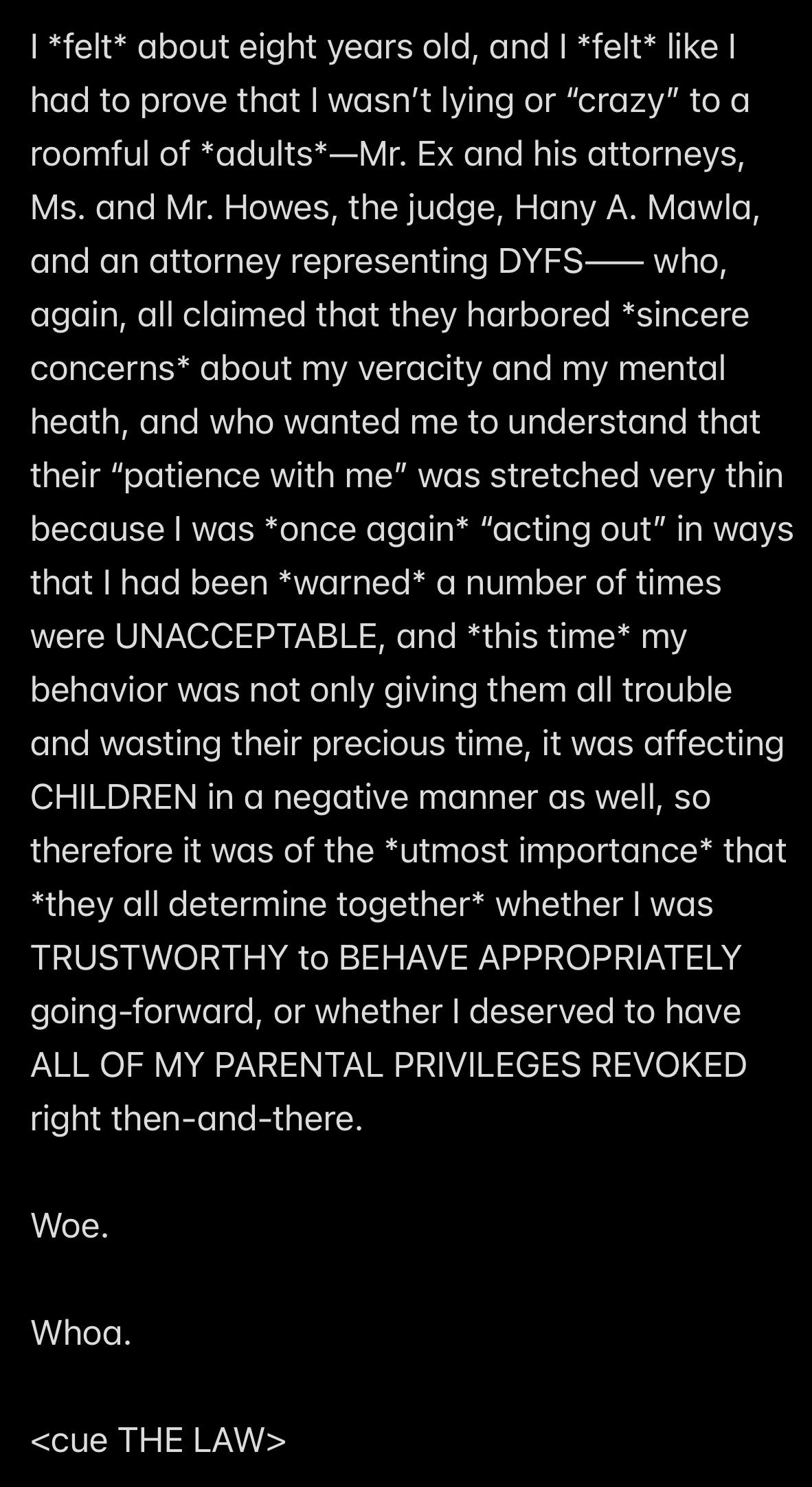 In retrospect, all of the analysis (other than the analysis of the “Howe” word event and “THE TEMPTATION OF SATAN” event) wasn’t even necessary to KNOW that Satan is my father, because to repeat THE UNDOUBTABLE TRUTH: IF SATAN CANNOT BE MY HUSBAND, THEN SATAN MUST BE MY FATHER.
