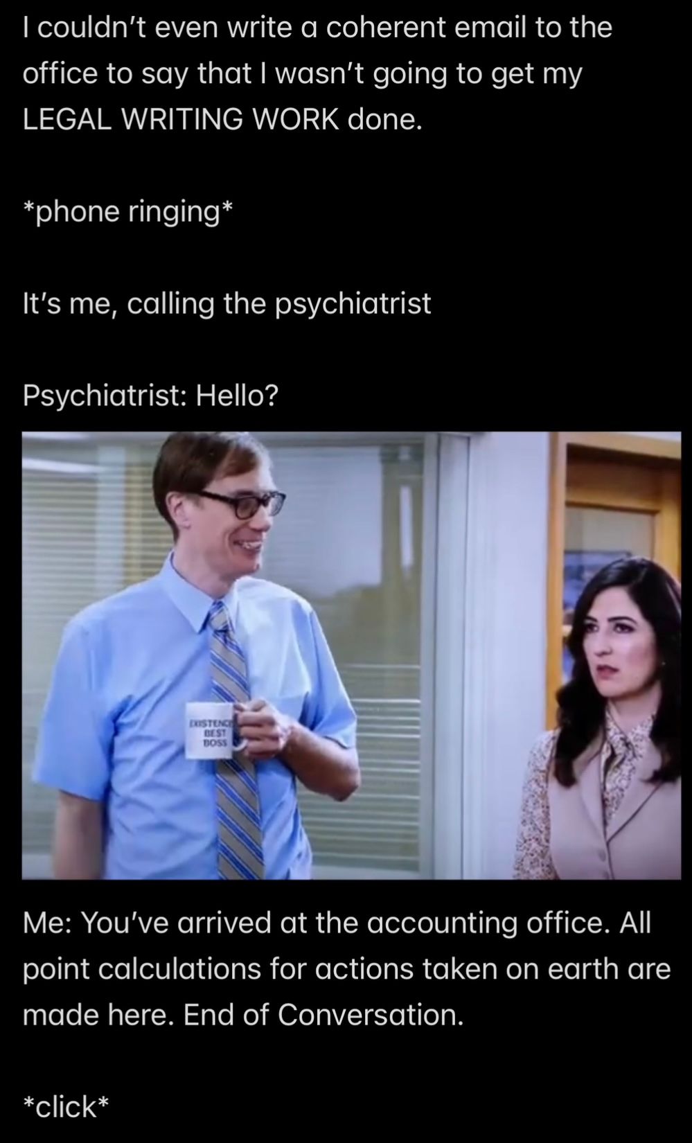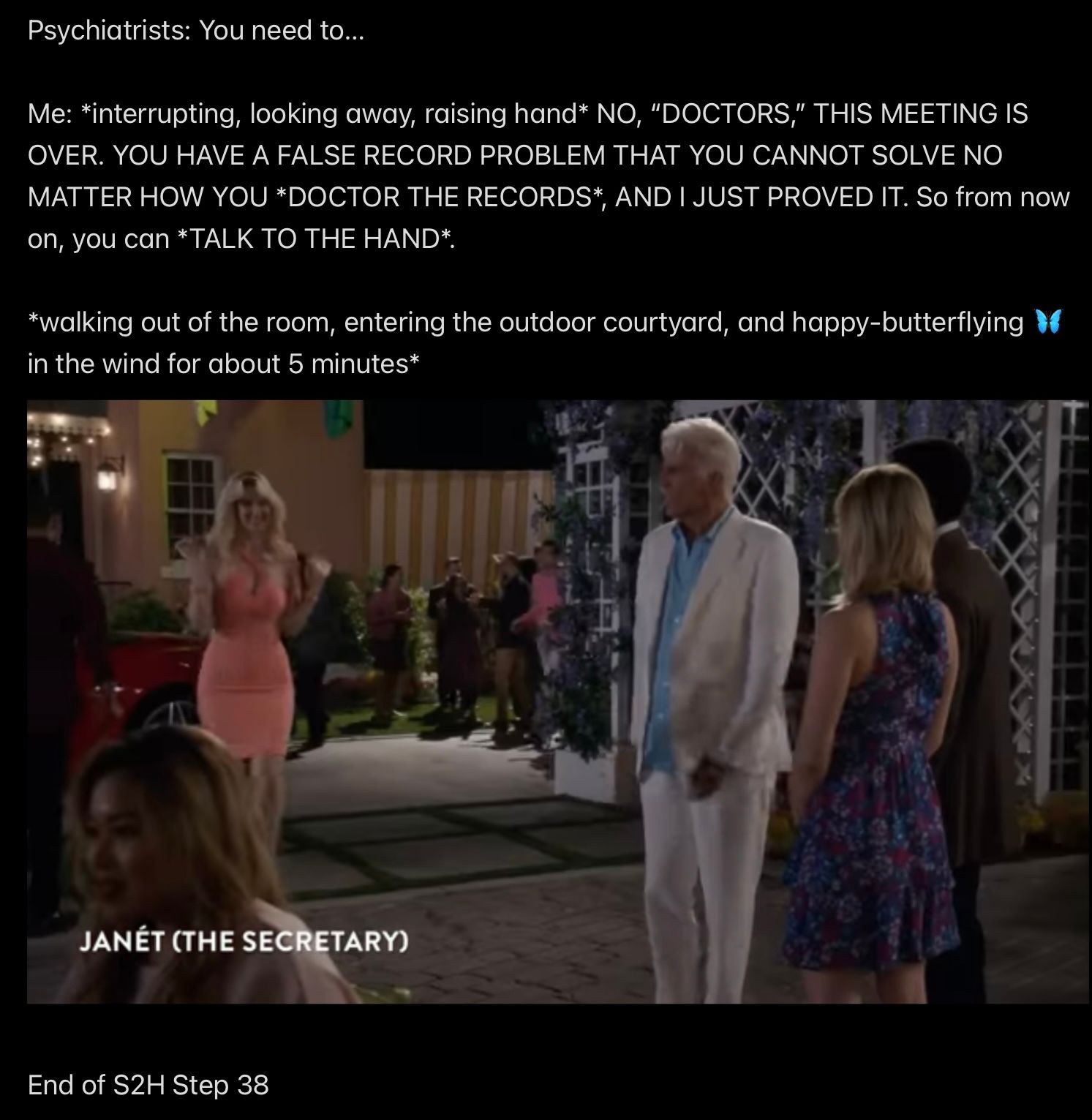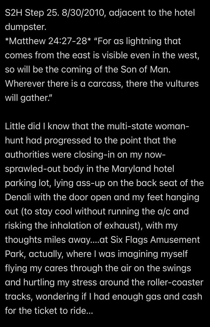 Frank: [*the real me* 2/20/2026; edited] OH.MY.GOD. Nooooo noooooo noooooo….….NO. I’m not going that route. If I FELT LIKE I wanted to stop living my best life TODAY to WATCH RE-RUNS OF “LAW & ORDER: SPECIAL VICTIMS UNIT,” then I could—for the 100 VALID PURPOSE of CATALOGING SEXUAL DEVIANCIES USING THE DEWEY DECIMAL SYSTEM, making it MY JOB to be A PUBLIC OFFICIAL ASSIGNED TO THE AFTERLIFE SEX OFFENDER REGISTRATION DESK—but I don’t FEEL LIKE that’s a job I’m COMPETENT to do! In fact, my incompetence at doing that job is unsurpassed in the universe. I am not a natural EMPATH; it’s very difficult for me to stay focused on what goes on in other people’s minds. ALL I NEEDED TO SEE TO “GET ON THE RIGHT PATH” IS THAT MY MIND CANNOT BE “CORRUPTED” BY MY BODY ANY MORE AFTER I *CHOSE* TO FOLLOW JESUS ON 8/28/2010 (and not coincidentally, that decision was made possible by my father, Wendell’s—Satan’s—c. February, 2010, decision to follow Mr. Ex MBA and murder me), so therefore I am going to limit my “‘special victims’ concerns” about the past to KEEPING MY MIND FOCUSED ON “MY WORK,” which is the TOEWC and LOVE (focusing on empathizing with Jesus and any people who chose to be Just like Jesus.)