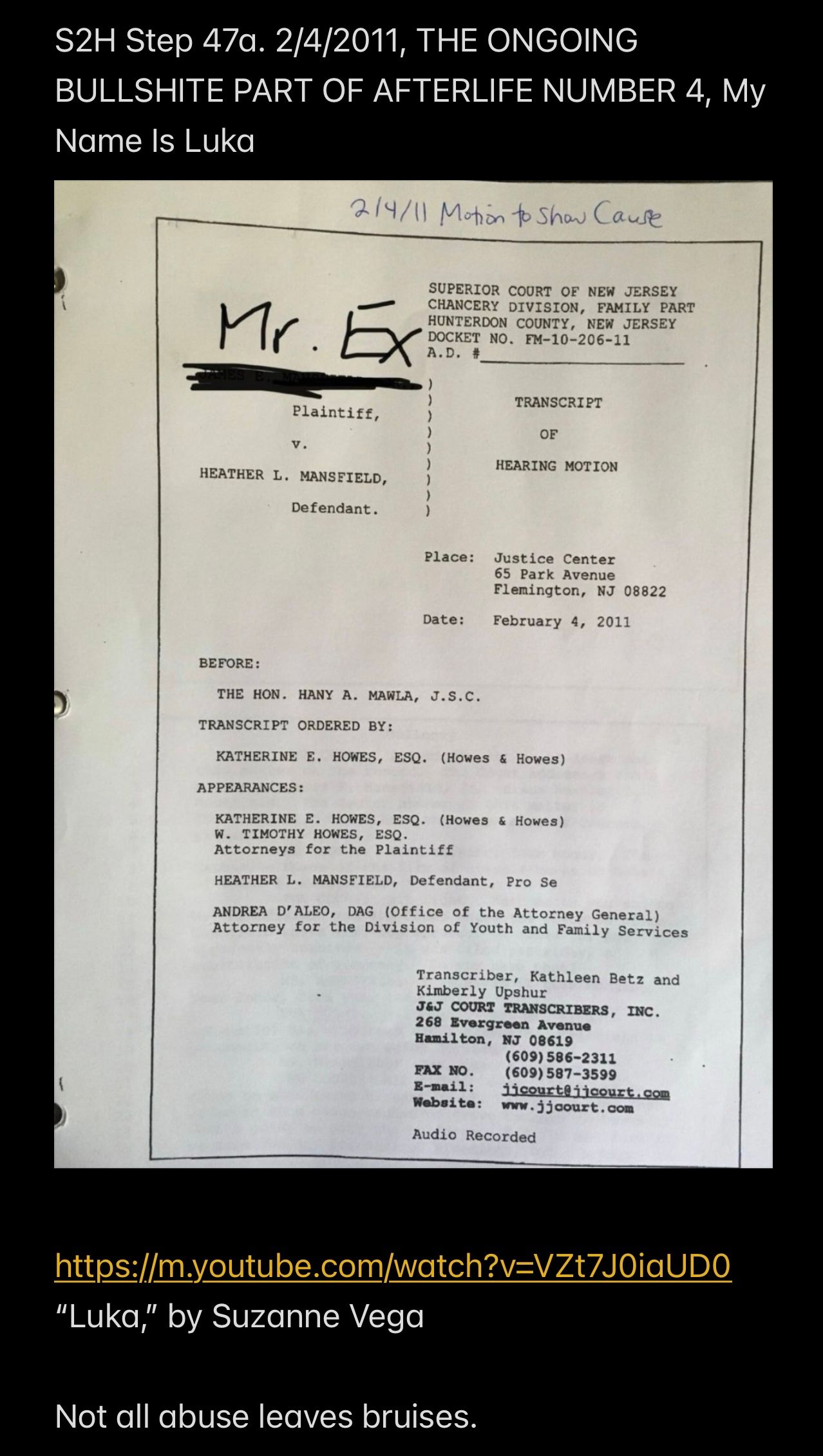 In fact, Mr. Ex MBA had dumped my zombie body and COMMITTED FINANCIAL *ABUSE* out the wazoo against me (see the 5/16/2011 D-Day transcript.)