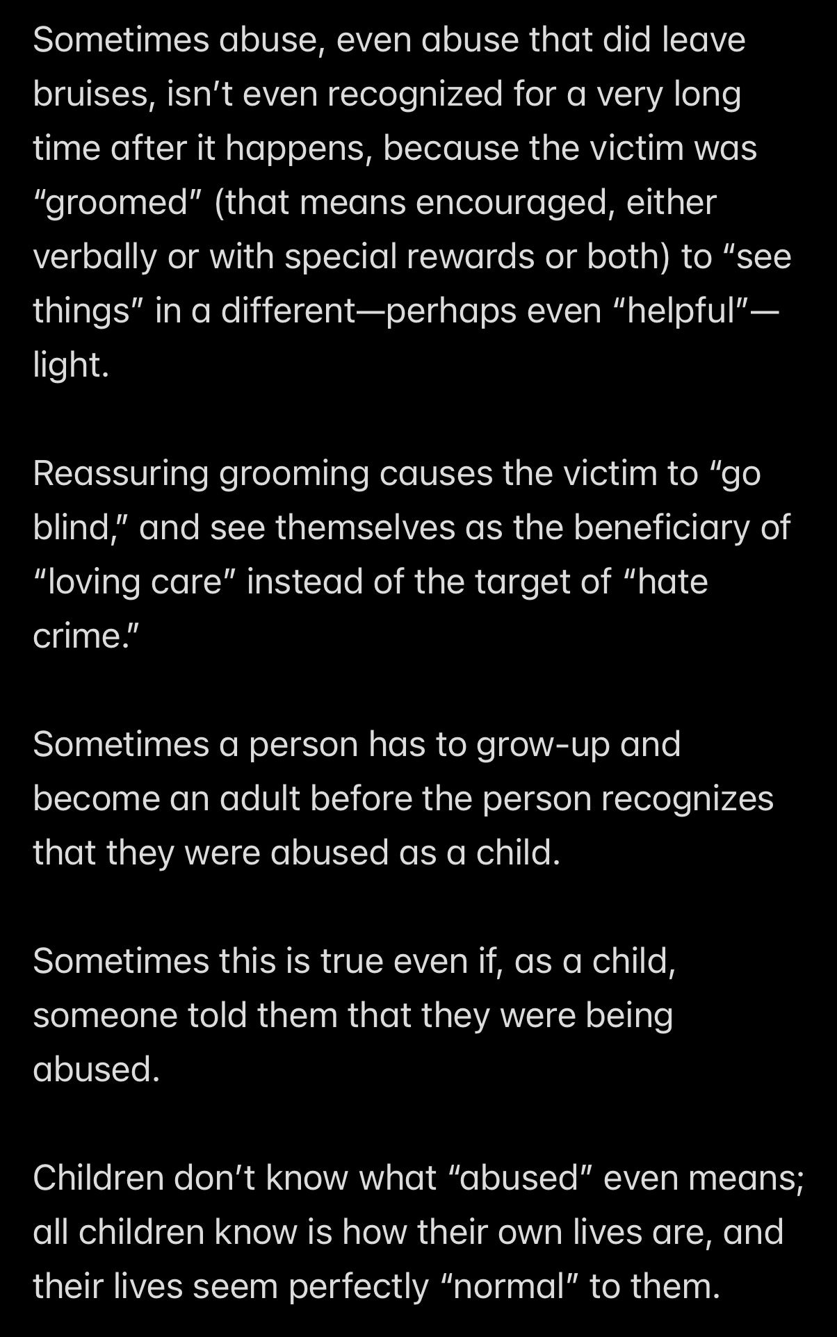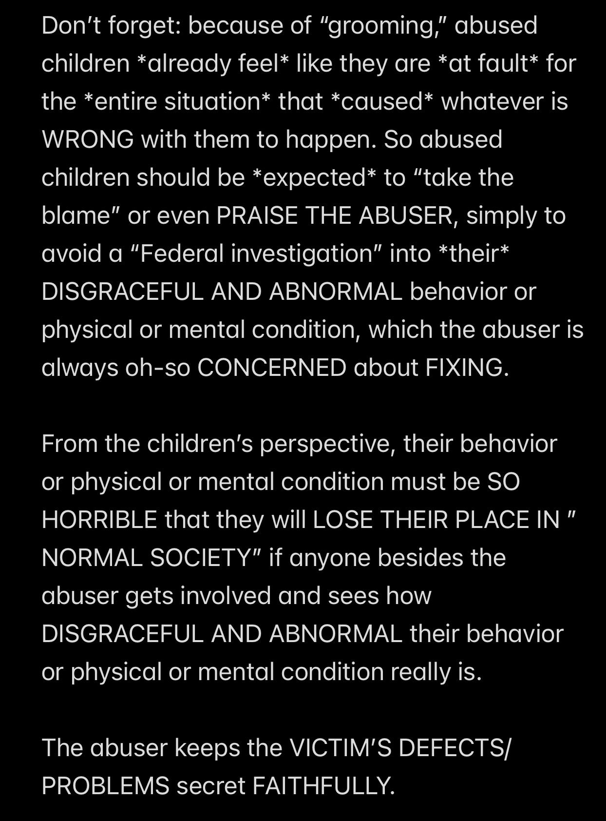 Mr. Ex MBA, OTOH, eschewed corporal punishment and USED “GROOMING” TO GAIN TRUST; Mr. Ex MBA would throw parties and call them “charity events,” selling tickets with the slogan “DRINK FOR THE CHILDREN.”