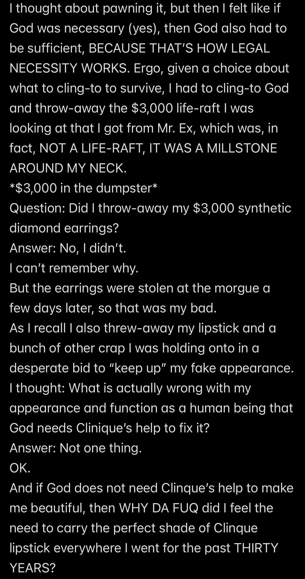 Wendell would crack a bottle of beer after eating Jesus’s flesh in effigy for brunch and beat my *ss at Sharon’s request.