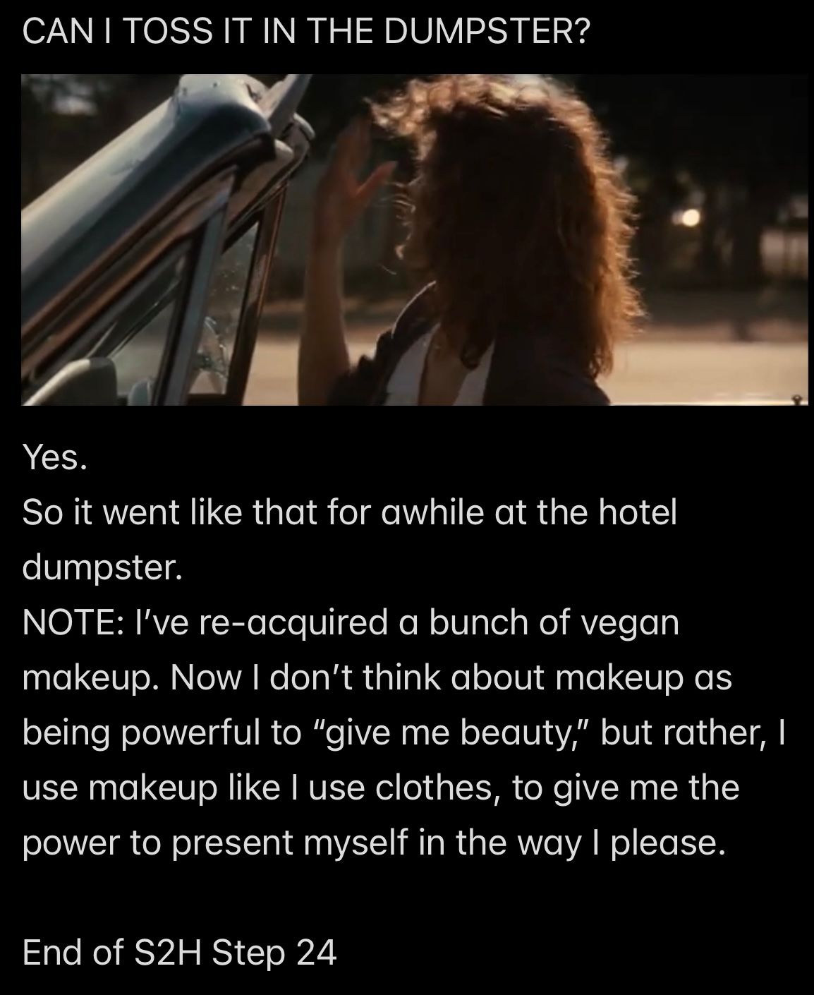 I have baggage, yes, but I’m going to use the baggage “internally,” as FUEL FOR THE FIRE that I need to KEEP BURNING FOREVER AGAINST MY FATHER SATAN, exactly as HE REQUESTED ME TO DO.