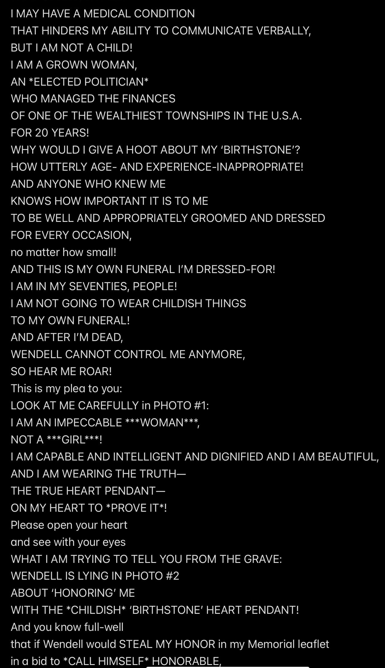 GANG-BANGING ME by sending me Sharon’s Memorial leaflet in August, 2022 (in which leaflet I was KNOWINGLY FALSELY IDENTIFIED by my given name, “Heather,” and Mr. Ex MBA’s last name, when in fact Wendell knew that I had Legally changed my name to “Job Prince” in 2017),