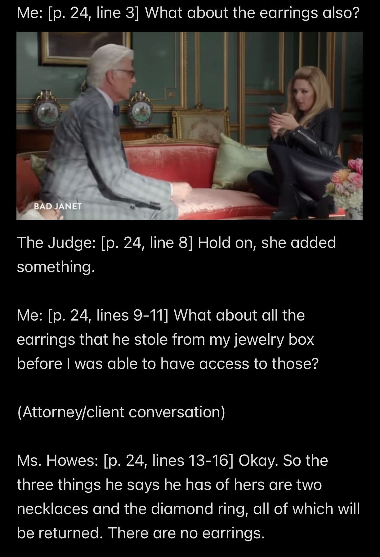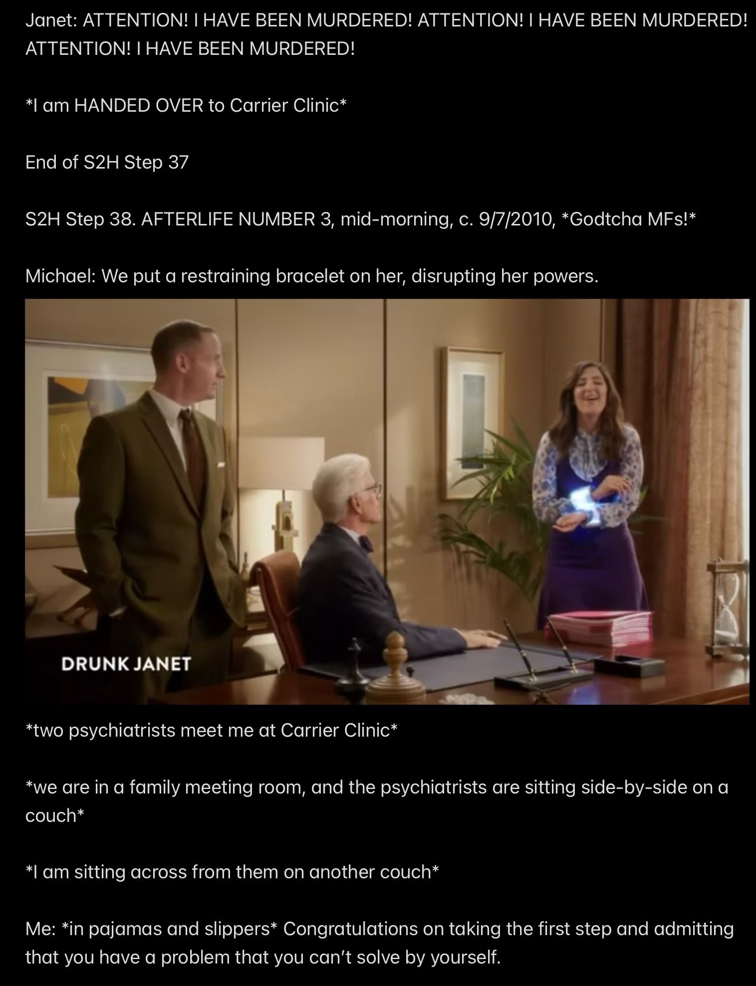 But perhaps the judge *was* blowing the whistle and it was up to Dr. CPhD to hear it? but instead Dr. CPhD IGNORED THE SCREAMING SIREN and that kept the judge locked in Hell? IDK. I always thought there was something a little *too honest* about the judge’s organized criminal activity. Time will tell.