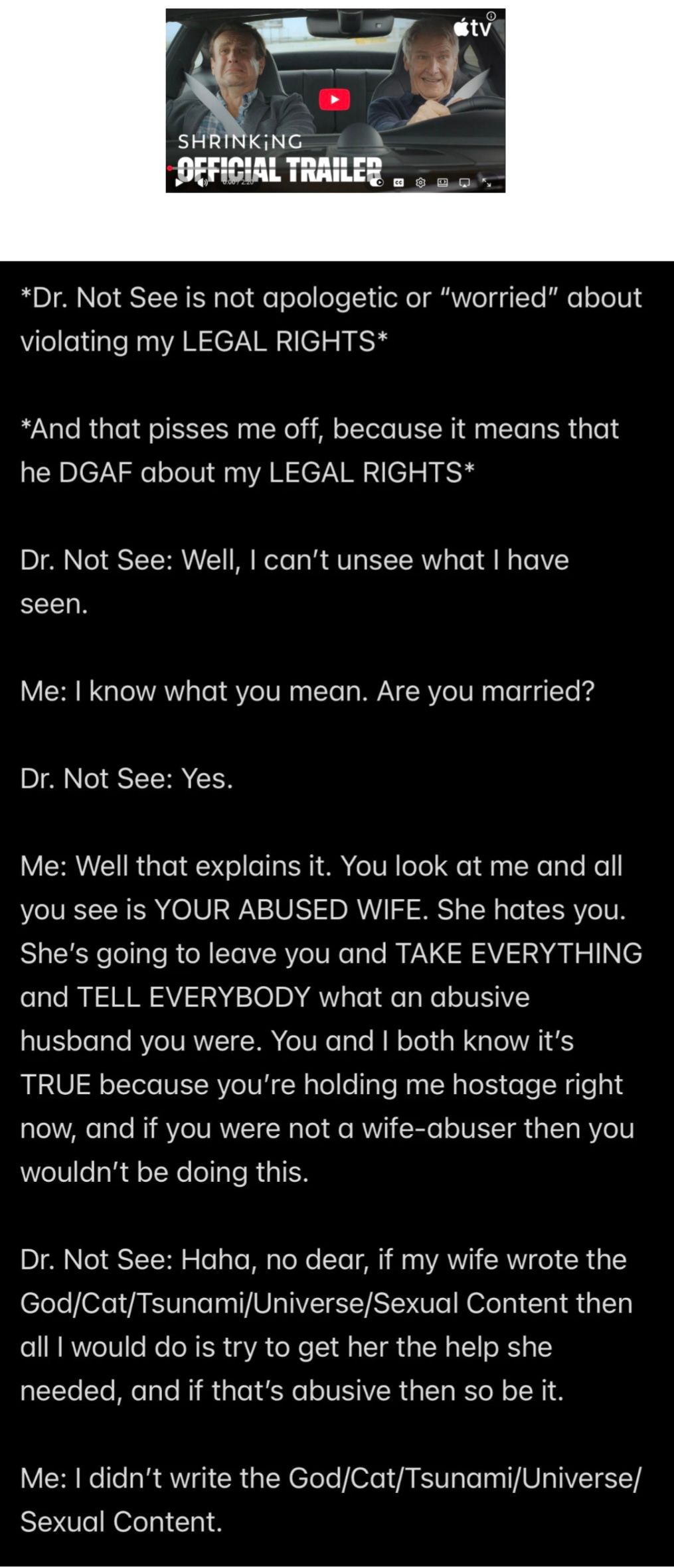Frank: [*the giant bunny rabbit* 3/12/2026] Those are TWO UNRELATED QUESTIONS—so that was a bit of a RABBIT HOLE!—and the ANSWER to second question is that it would be IMPOSSIBLE for Wendell to be a JESUS-OPERATED ROBOCOP because the “Howe” word compels the assumption that Jesus my husband, which means that A JESUS-OPERATED ROBOCOP MOST ASSUREDLY WAS NEVER BEATING MY *SS AT SHARON’S REQUEST OR CALLING ME “MENTALLY ILL” OR PAYING *NOT A NEST EGG* LIFE INSURANCE PREMIUMS ON MR. EX MBA’S BEHALF; so therefore if Wendell is a ROBOCOP, then Wendell would have to be a 100 Satan-operated ROBOCOP from the day of my birth.
