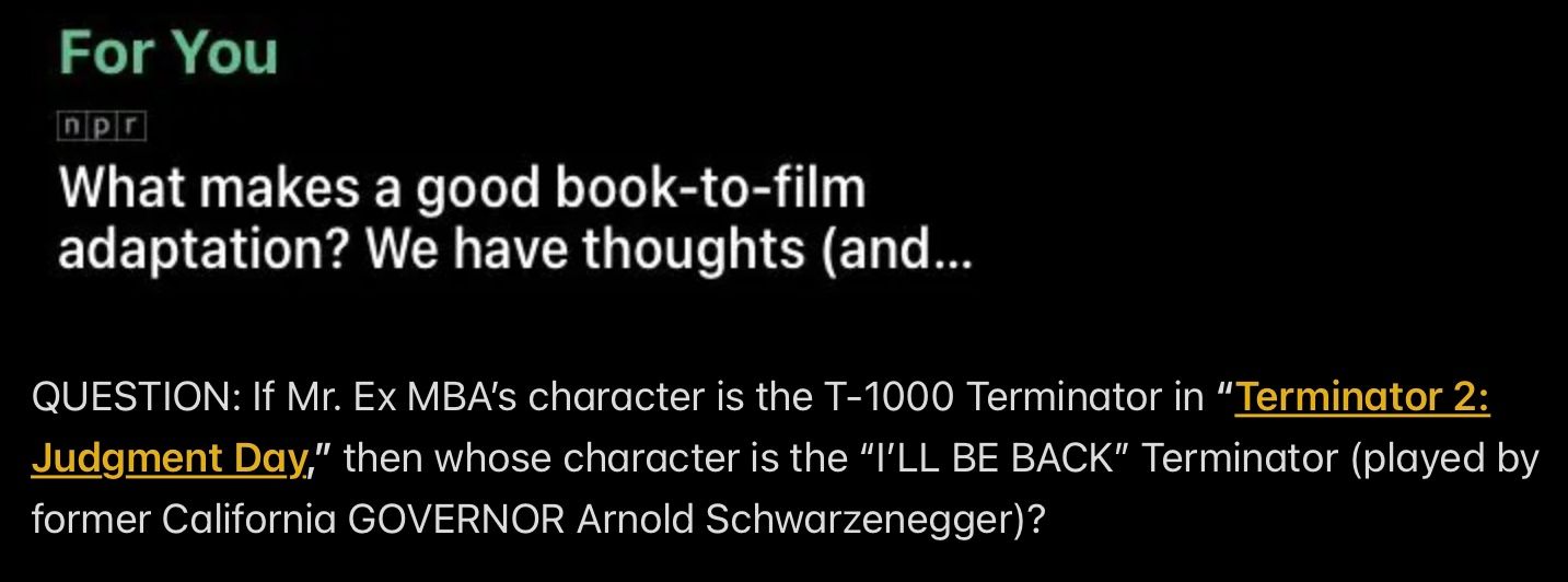 Think about it: Wendell compared himself to Saddam Hussein during a monologue about his ZERO-TOLERANCE FOR SIN STANCE, so Wendell and Mr. Ex MBA could NOT POSSIBLY have the same GOVERNOR MODULE NUMBER.
