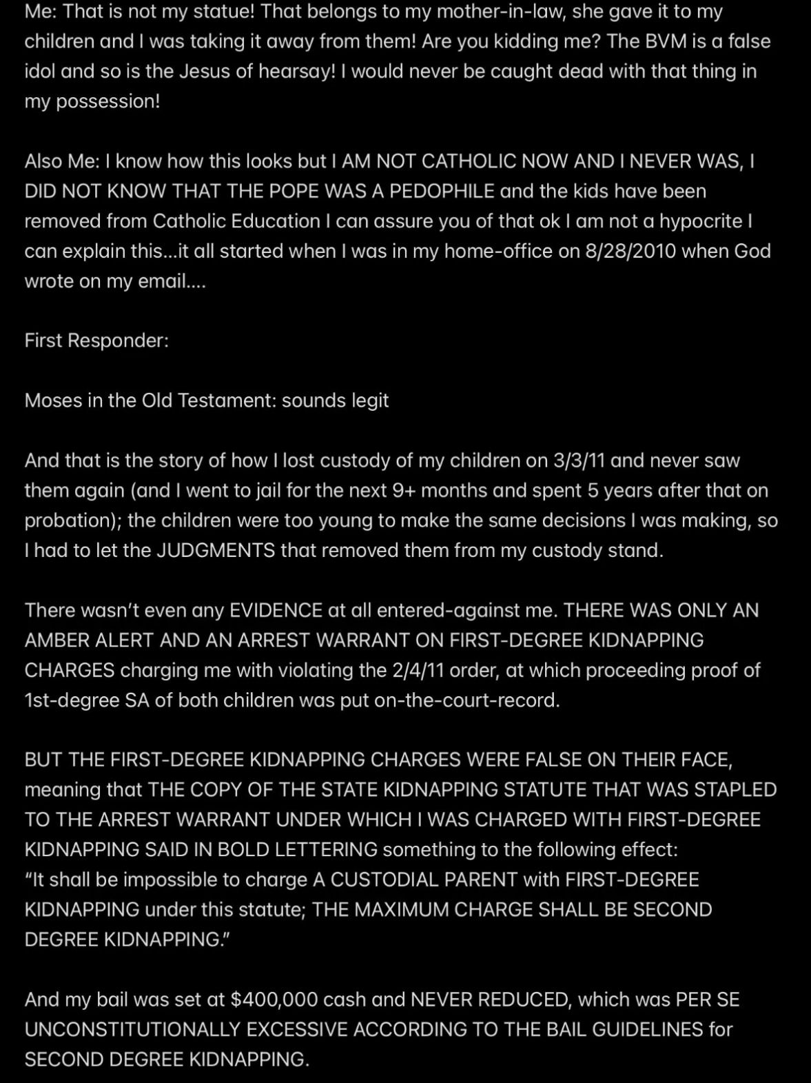 But still, the words written by God that were attributed to non-God Biblical characters WOULD STILL BE HEARSAY because God put those words in the mouths of third parties who are not available for cross-examination because of DEATH, which makes them UNRELIABLE WITNESSES TO JESUS’S STORY, by definition, unless we are going to say that it’s RIGHT TO KILL SOMEONE FOR BEING RIGHT, which I submit is FALSE, and that’s a conclusion that I separately verify in Article 2 (HYAKUJO’S FOX: Case 2 in “The Gateless Gate” Book of Zen Koans by Mumon.)