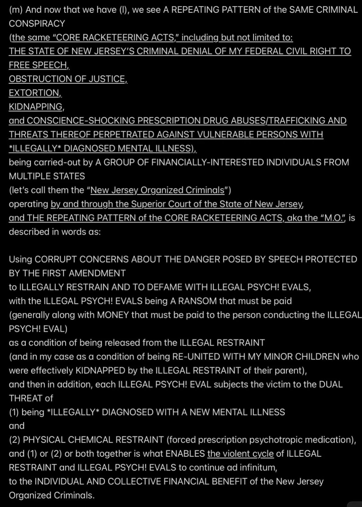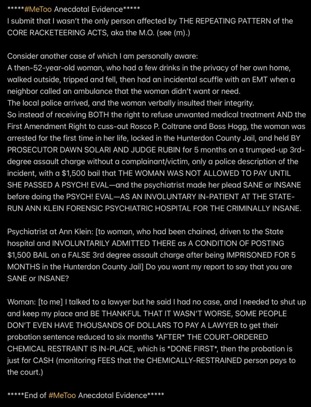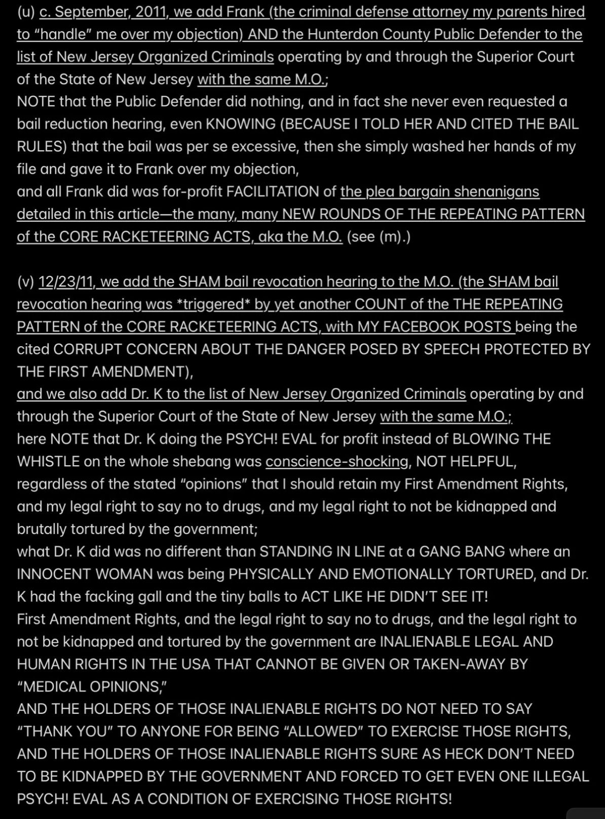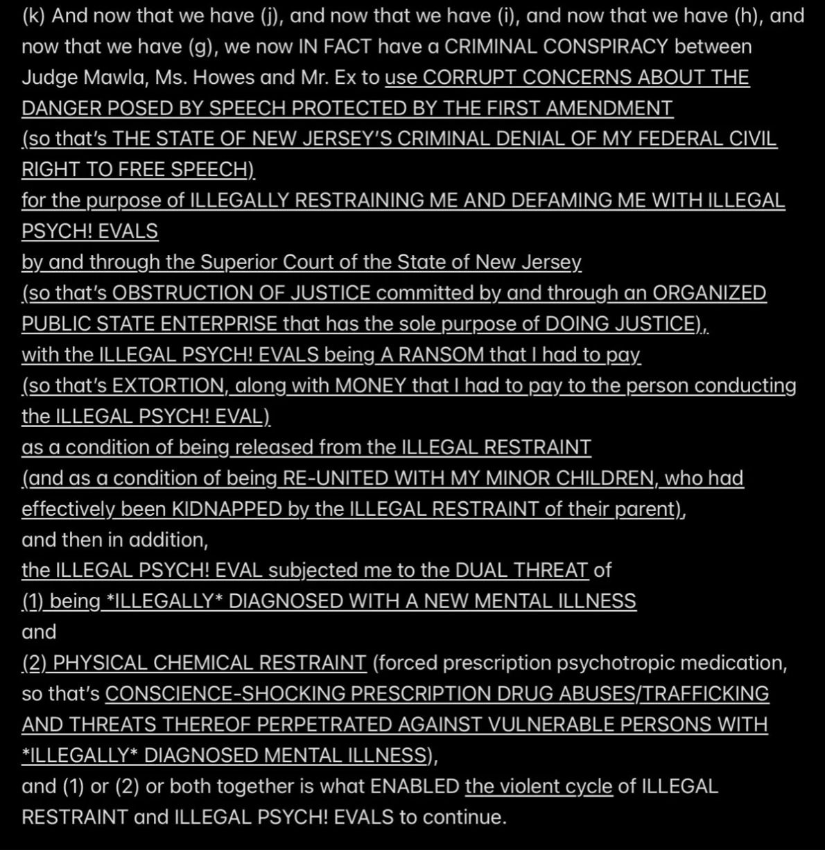 But because JESUS DID NOT REALLY INVOKE THE BET—SATAN WAS EX’ed—Satan and Mr. Ex MBA and their accomplices became jointly and severally FINANCIALLY LIABLE TO JESUS when I was murdered (at least four times a few days after the prenatal vitamins were delivered from Mexico into the Rainbow Hill House garage), and now they are all obligated to PAY (with interest at 29.99% APR, the highest allowable rate in New Jersey) THE $2M “PRICE ON MY HEAD” THAT MR. EX MBA SET WITH THE PROVEN-ON-THE-D-DAY-5/16/2011-COURT-RECORD *SPECIFIC INTENT* TO MURDER ME FOR THE $2M TERM LIFE-INSURANCE PAYOUT, with the presumed plan being to use the life-insurance proceeds to pay the Drug Lord in Mexico for manufacturing and delivering the prenatal vitamins.