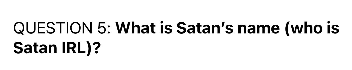 So NEXT we must try to ID the False Prophet IRL, and we also need to figure-out Satan’s name IRL.